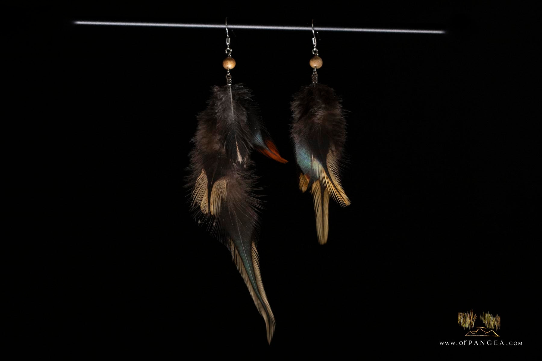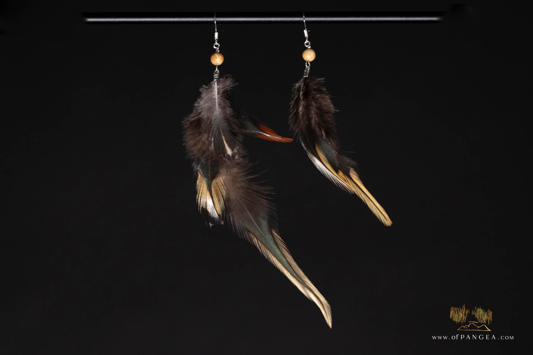 JF320 || Black and gold feathers, journal jasper bead, sterling silver