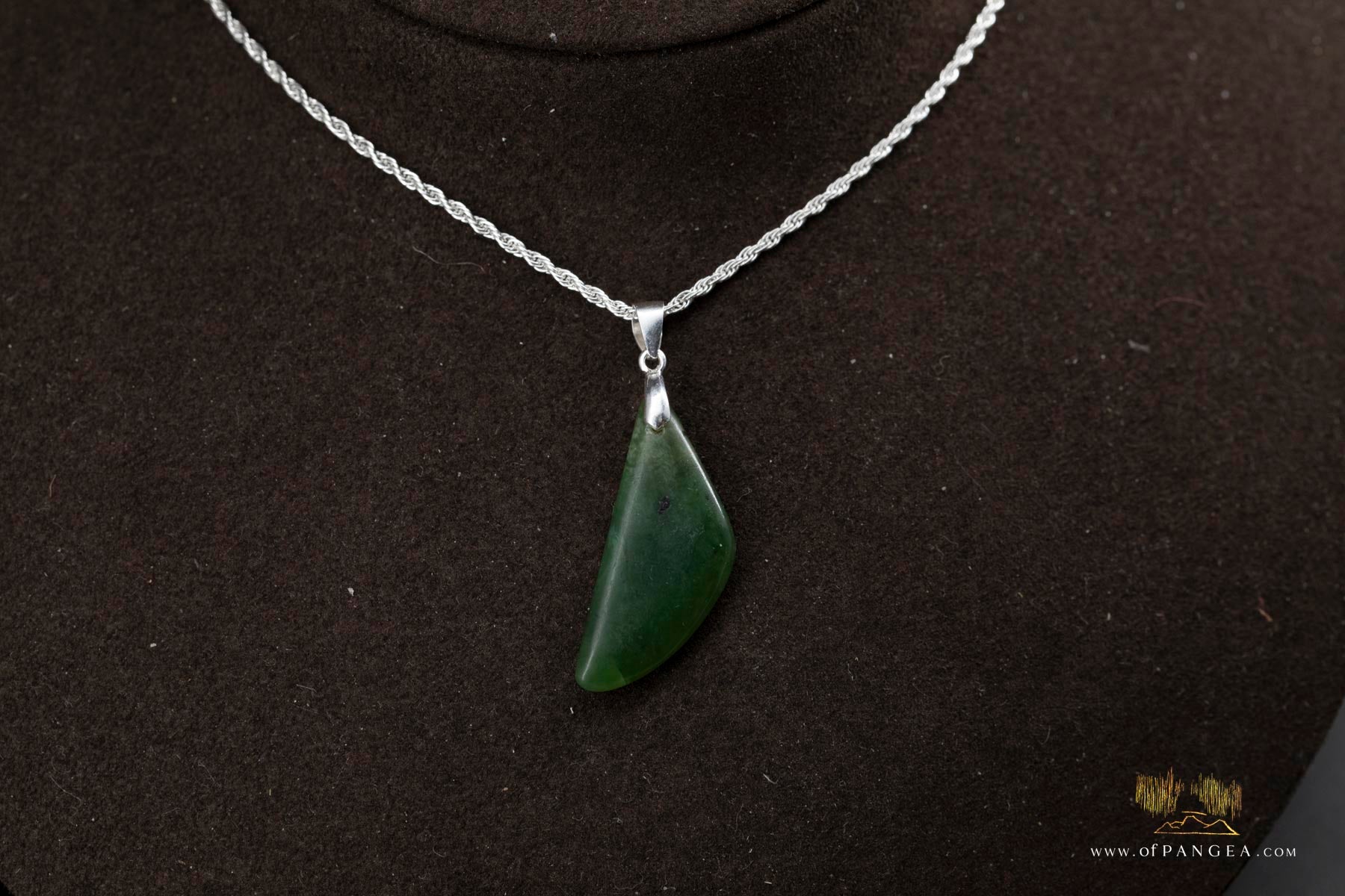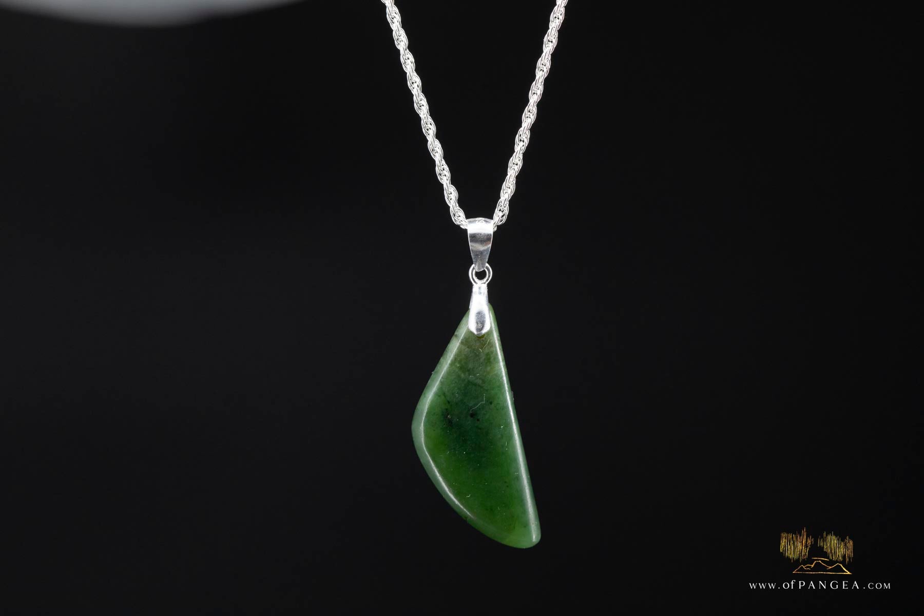JF699 || This nice little pendant was carved from a select section of British Columbian Green Flower Nephrite Jade with a little chromium in it (bright green flecks) strung on a 0.925 - Italian sterling silver rope chain 18inch 1.5mm