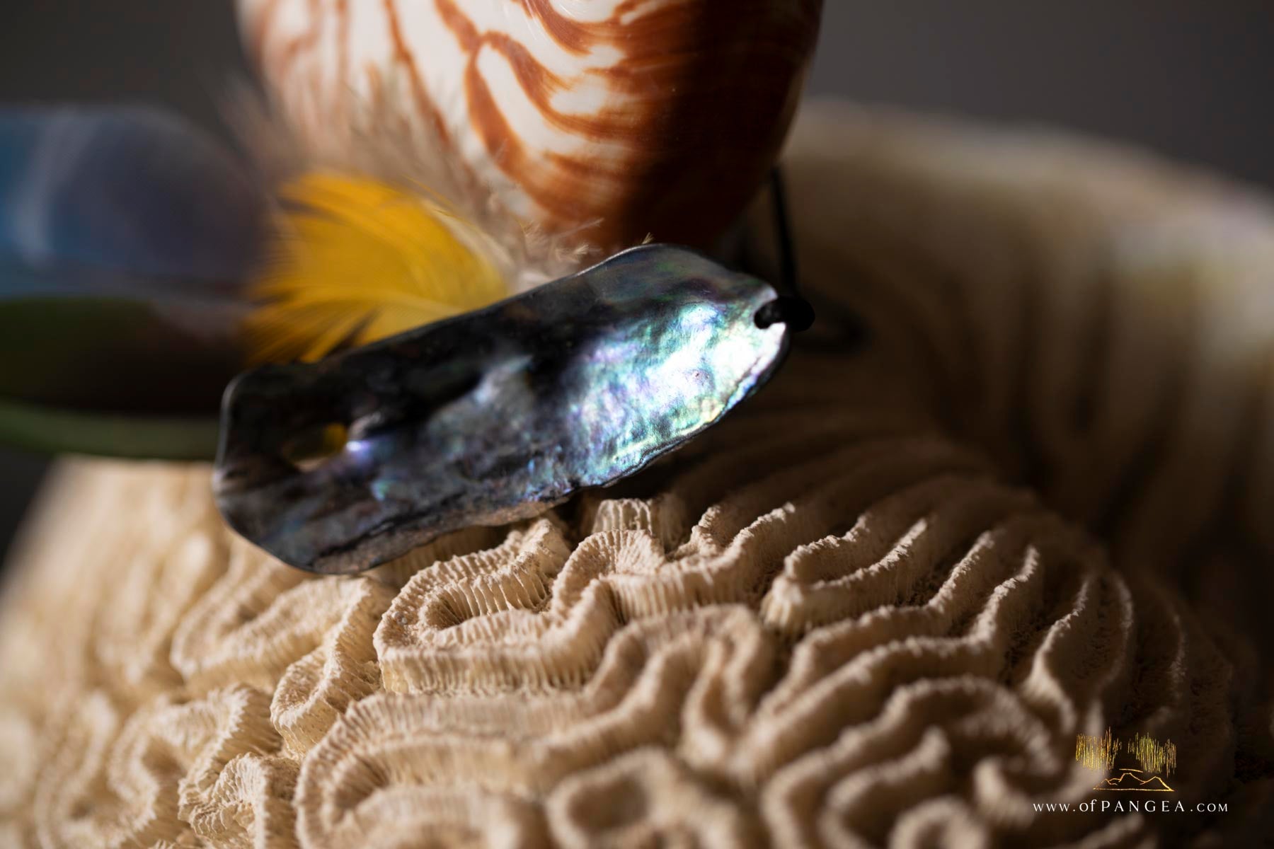 JF118 || Nautilus shell poised on top of a sections of brain-coral recovered from the beach pre-antiquities act acquired during my childhood