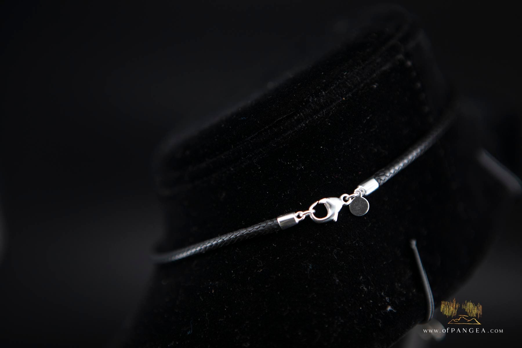 Pendant is strung on 18inch Italian Leather with sterling silver lobster clasps