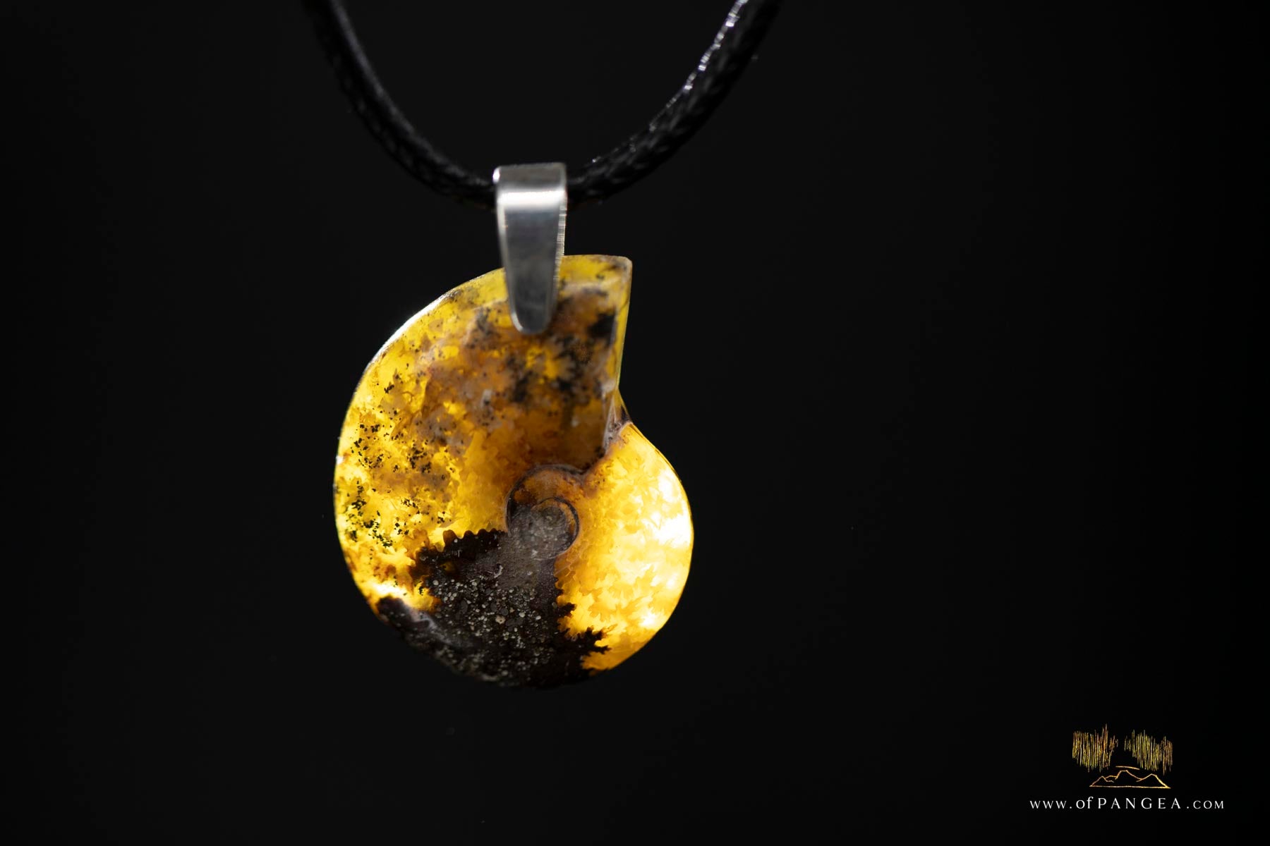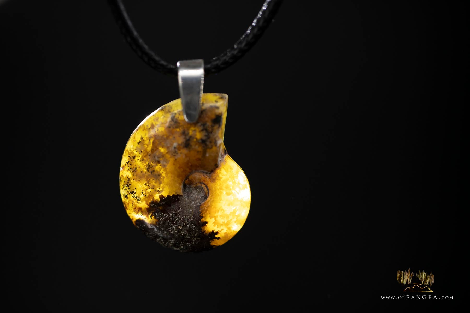 Fossilized Golden Agate Per-mineralized Full Ammonite Necklace - Italian Leather sterling silver necklace || JF574