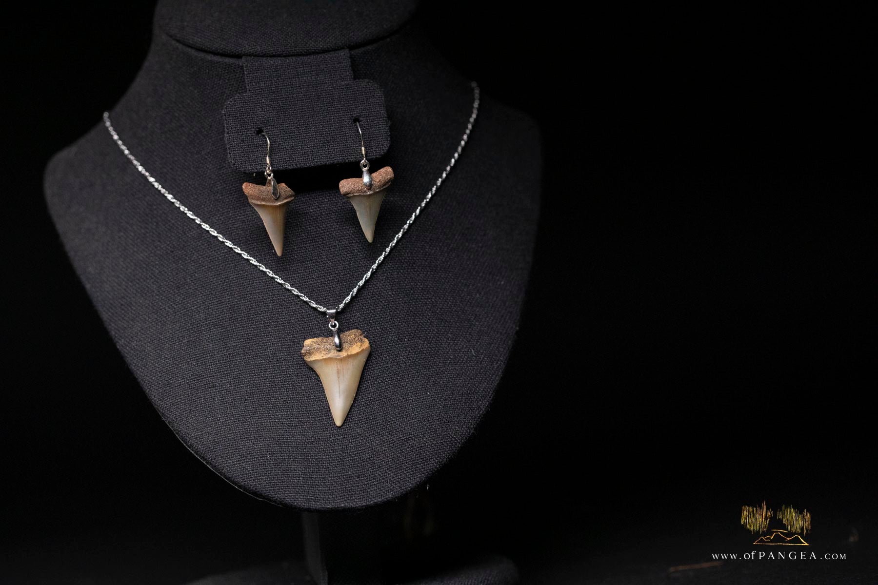 Fossilized Mako Shark Teeth - 5-23 Million Years Old - Necklace and Earring Set - 0.925 Italian Sterling Silver 1.3mm 20 inch rope chain