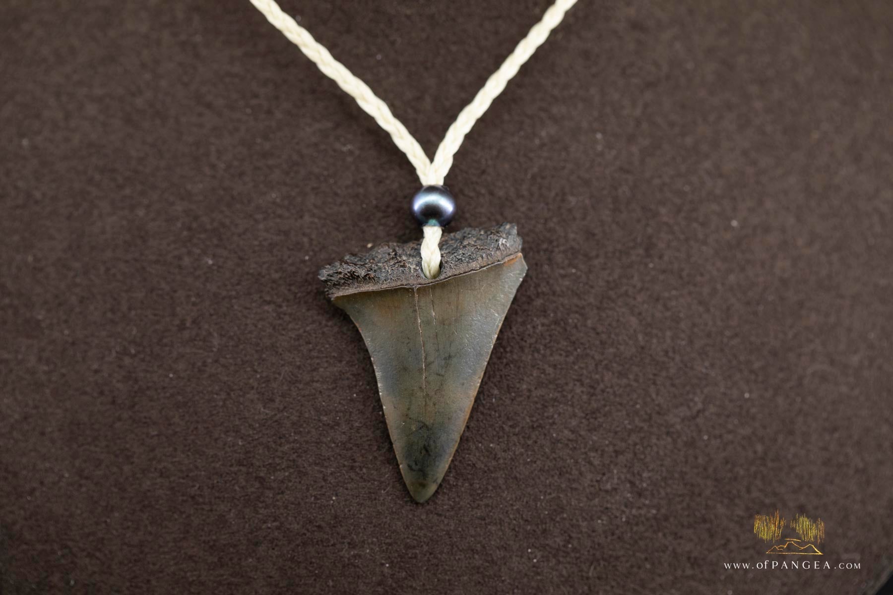JF690 || Fossilized Mako Shark Teeth - 5-23 Million Years Old - Necklace & AAA Peacock pearl strung on a hand-braided three-plaited white waxed polyester cord and sliding knots for adjustable length.
