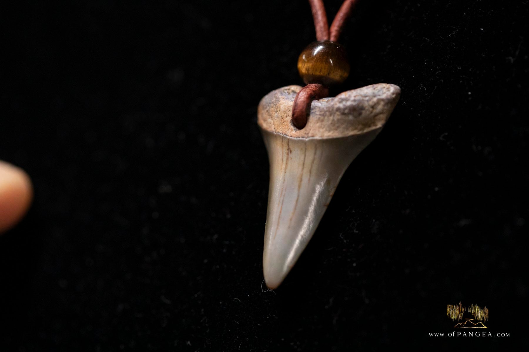 Fossilized Shark Tooth - Leather Cord Tigers Eye Bead || JF168