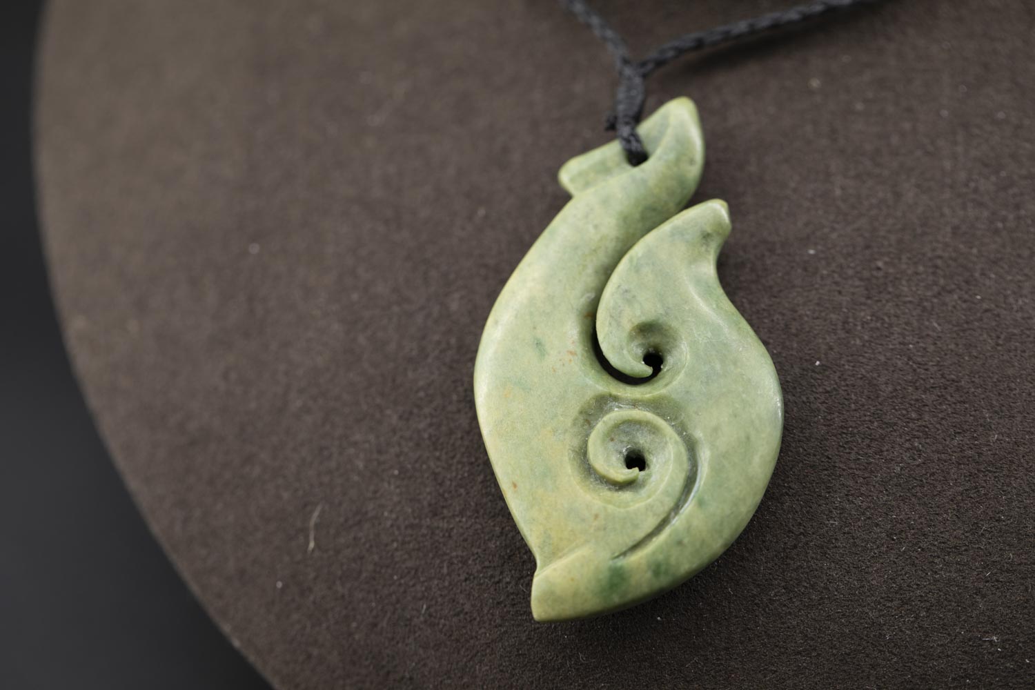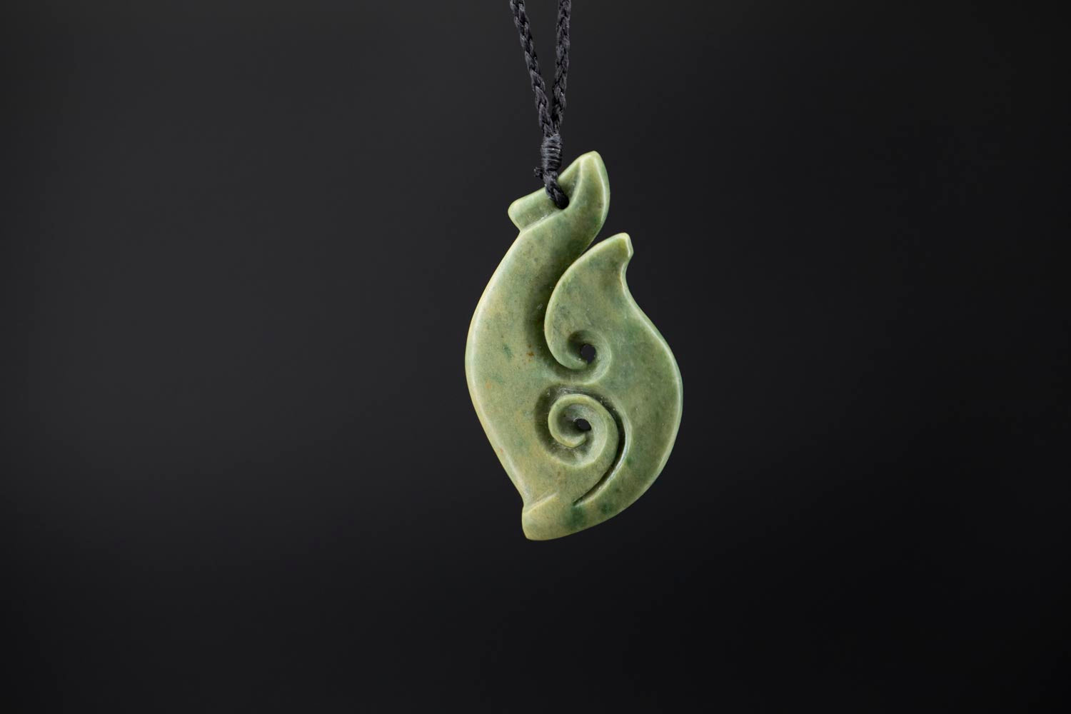 This exquisite carving combines the power of two significant symbolic designs: the Hei Matau and the Koru. Carved from sacred Princesa Jadeite from Guatemala, this piece tells a story of both physical journey and spiritual growth.