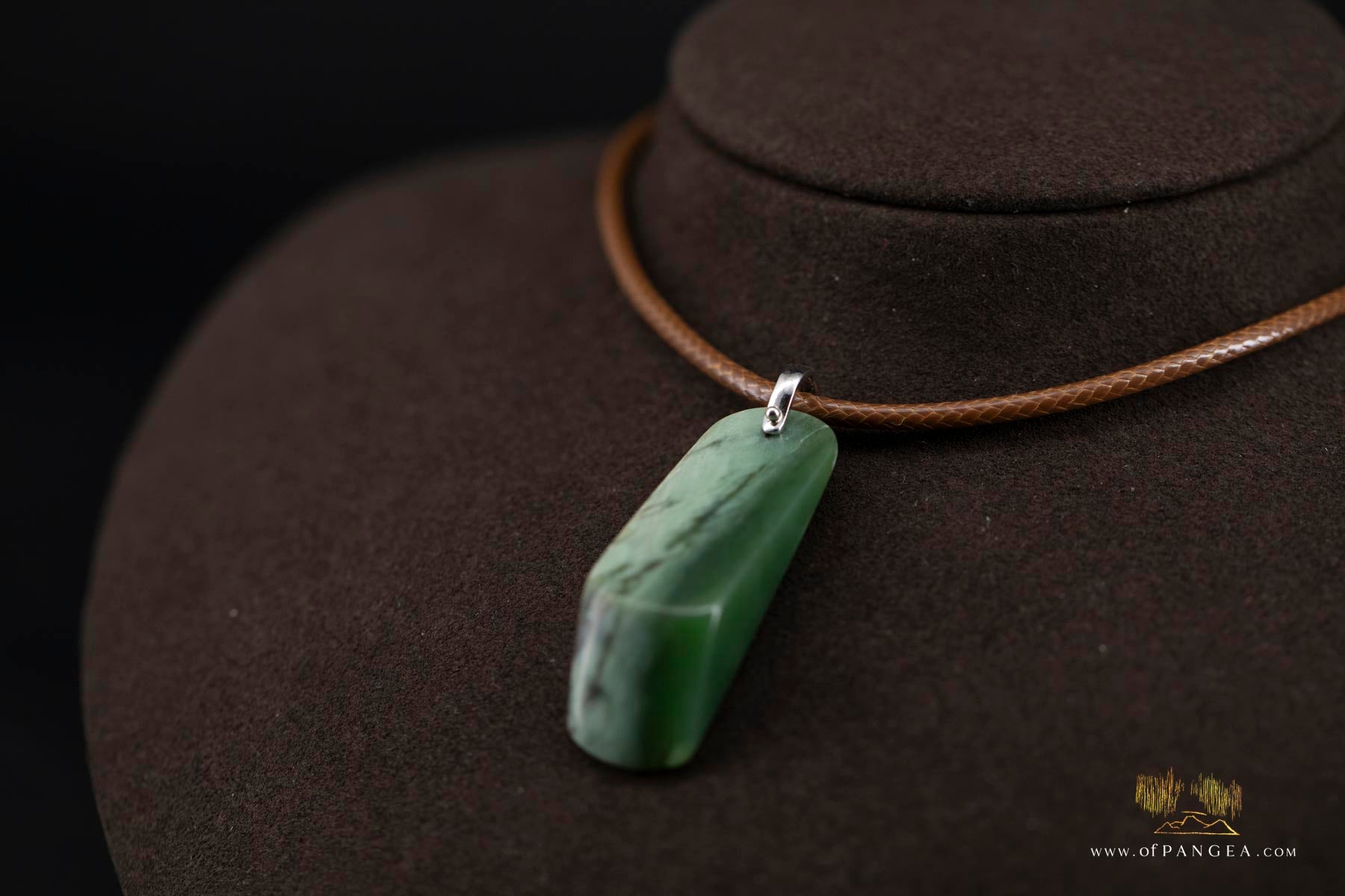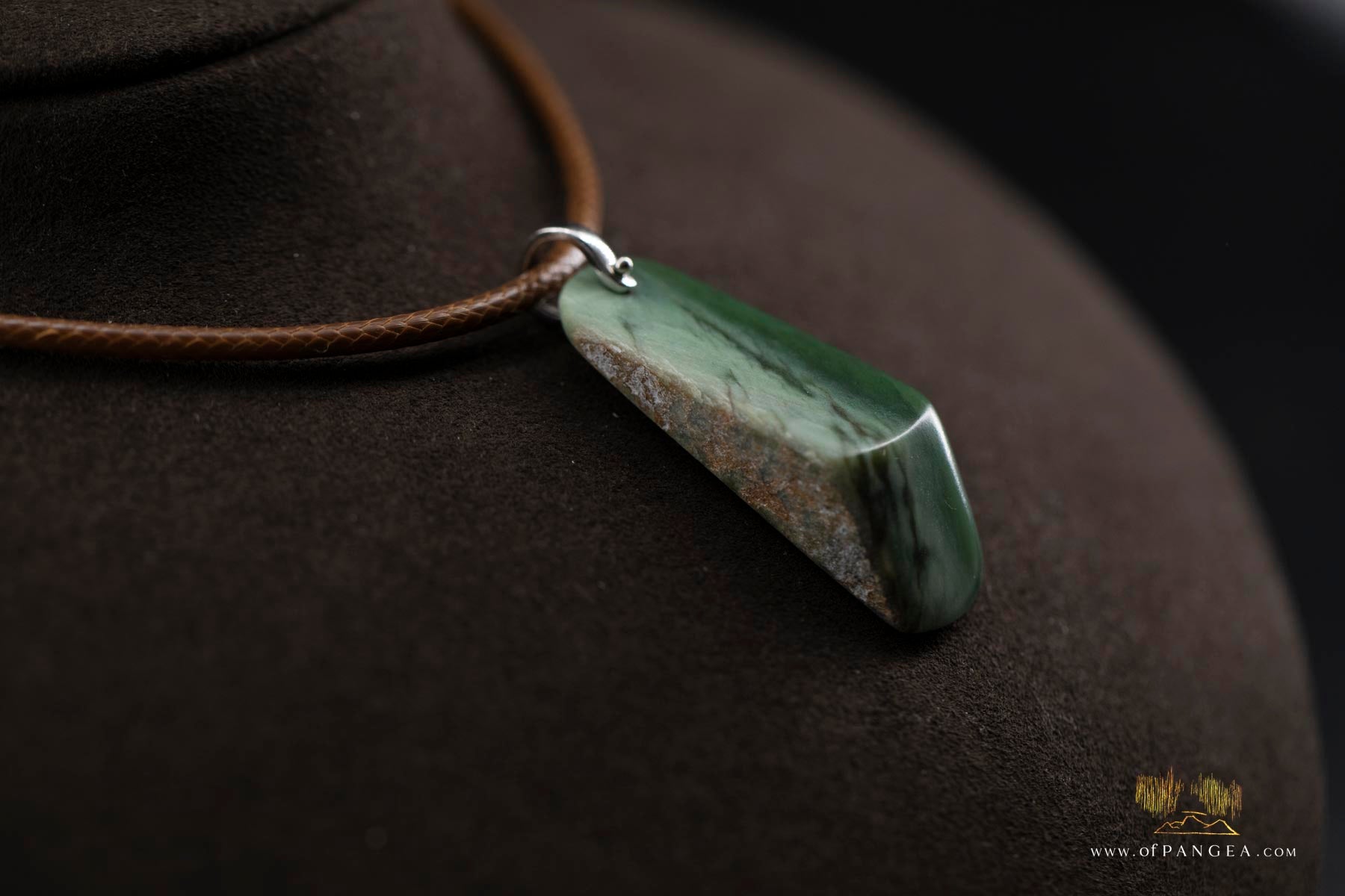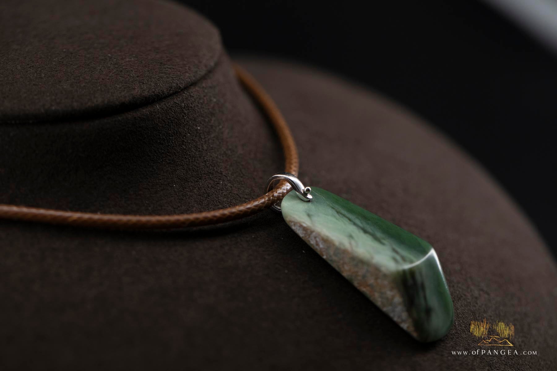 Hei Toki necklace - Inanga & Kahurangi pounamu Nephrite Jade - New Zealand - Italian leather and sterling silver || JF532