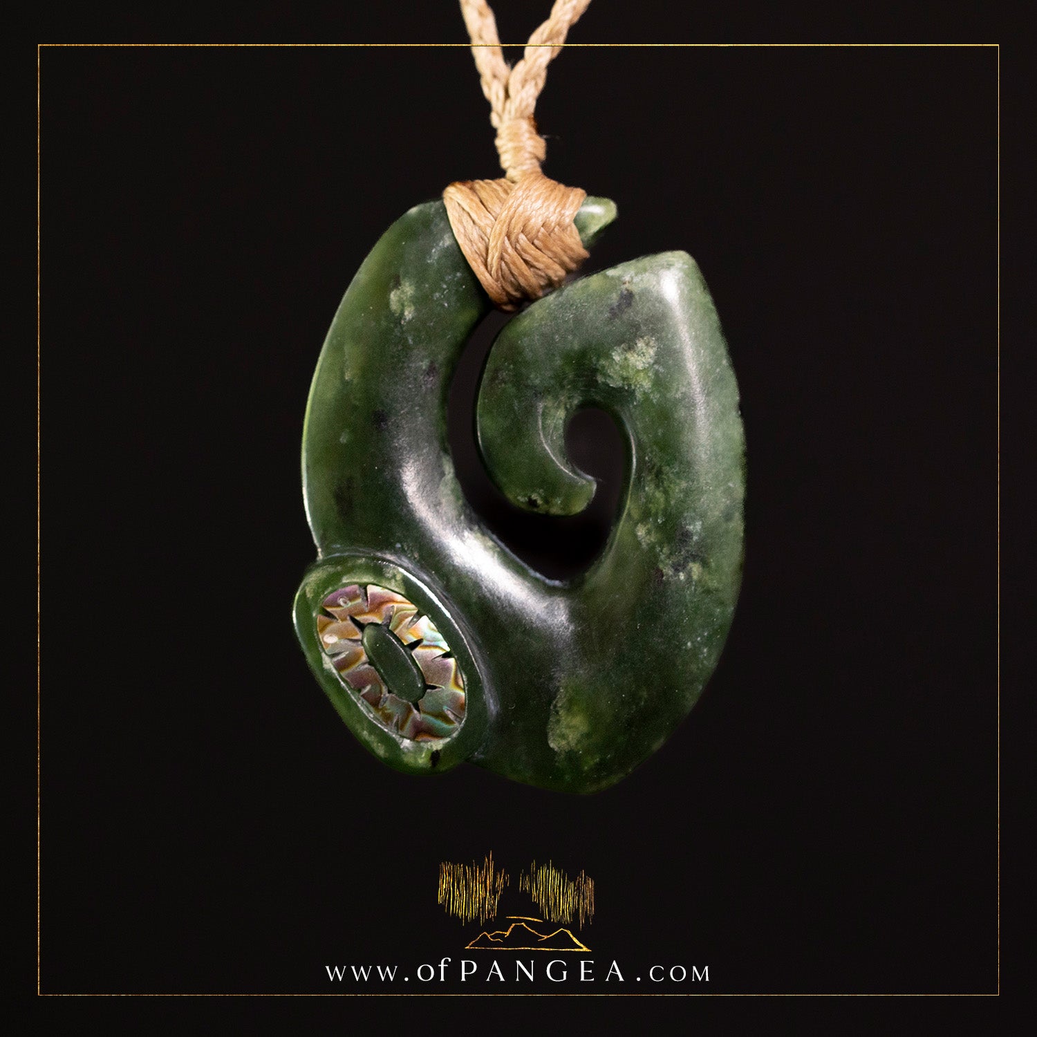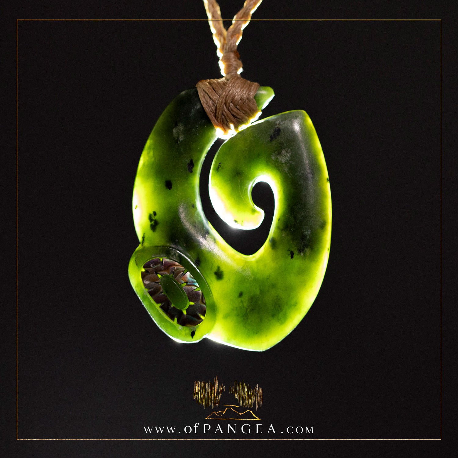 Kawakawa Pounamu hei matau - with paua inlay || Nephrite Jade and Abalone || Aotearoa New Zealand