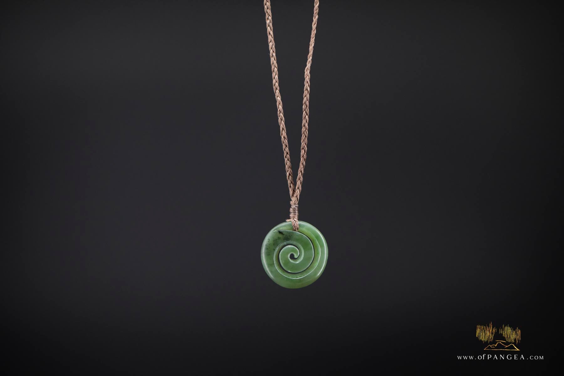 Koru Spiral carved from Wyoming Green Apple Nephrite Jade - Necklace || JF900