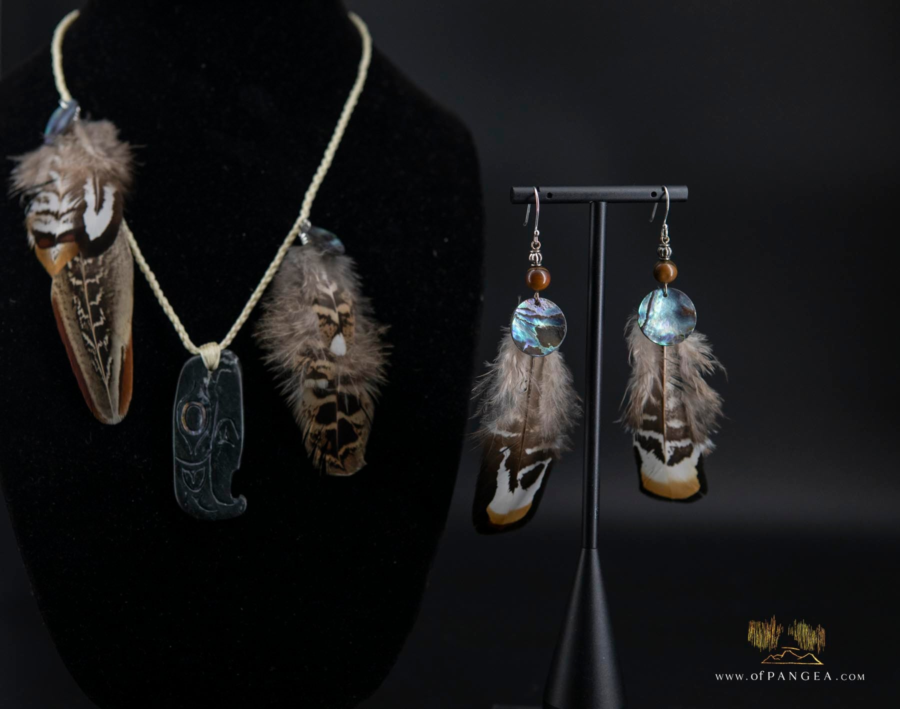 These feather earrings match Necklace Carving JF858 || Kwakiutl THUNDERBIRD