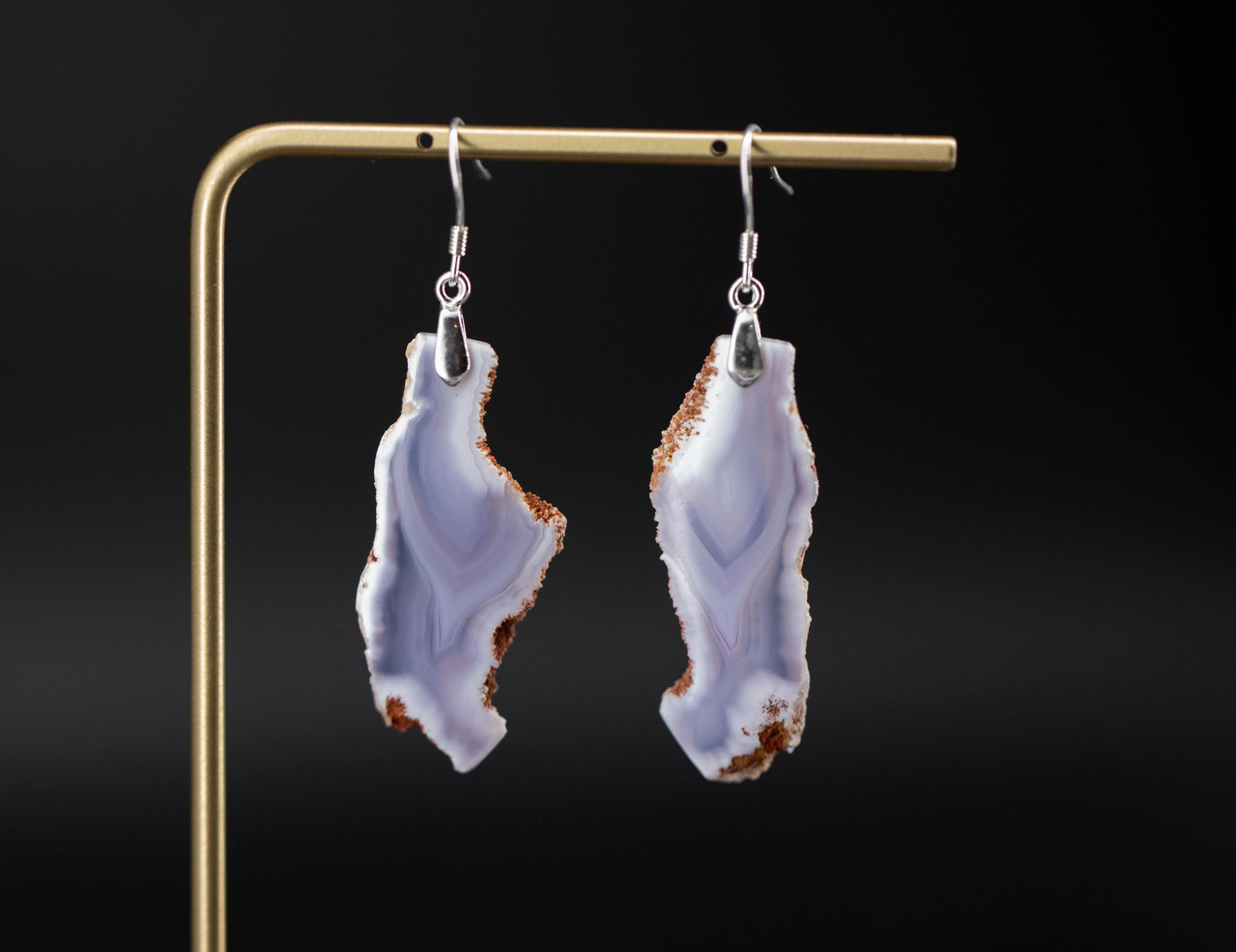 JF938 || Lavender agate slice earrings - sterling silver - high gloss finish and translucent. These are 100% natural color, undyed and non-treated. Straight out of the earth