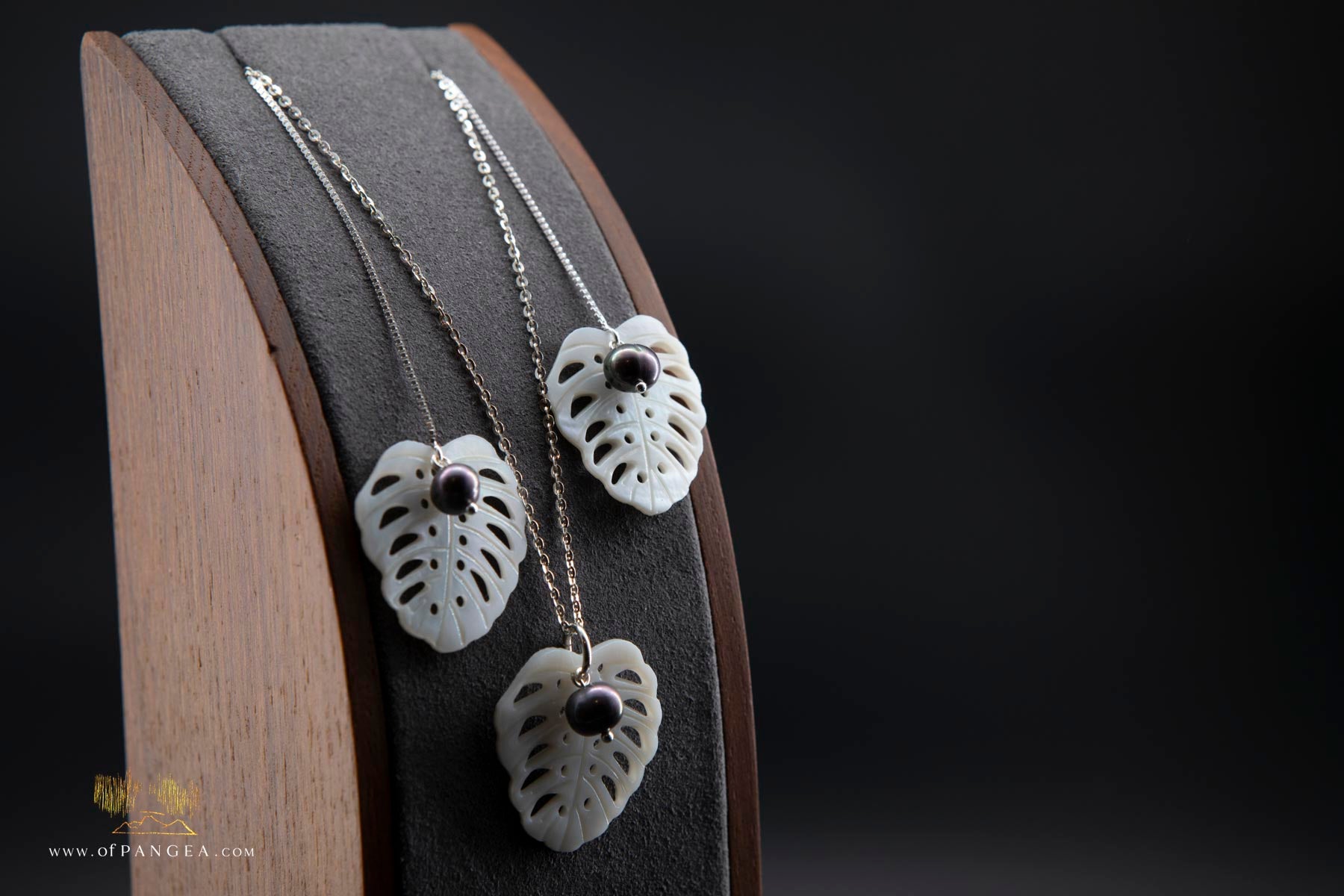 Mother of Pearl Monstera Leaf Pass-through Earrings - AA peacock pearl - Sterling Silver