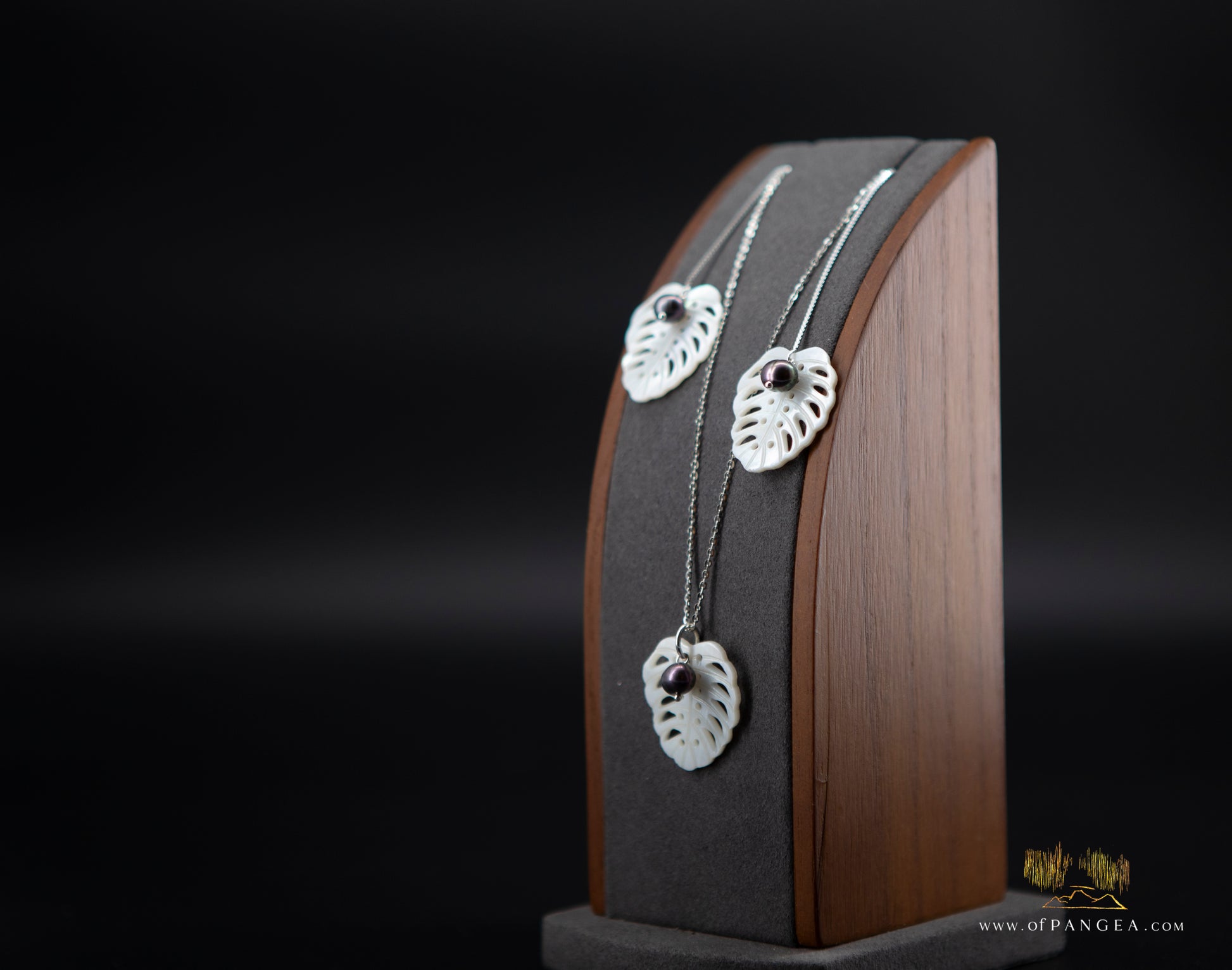 Mother of Pearl Monstera Leaf Necklace - 6-7mm FW AA peacock pearl