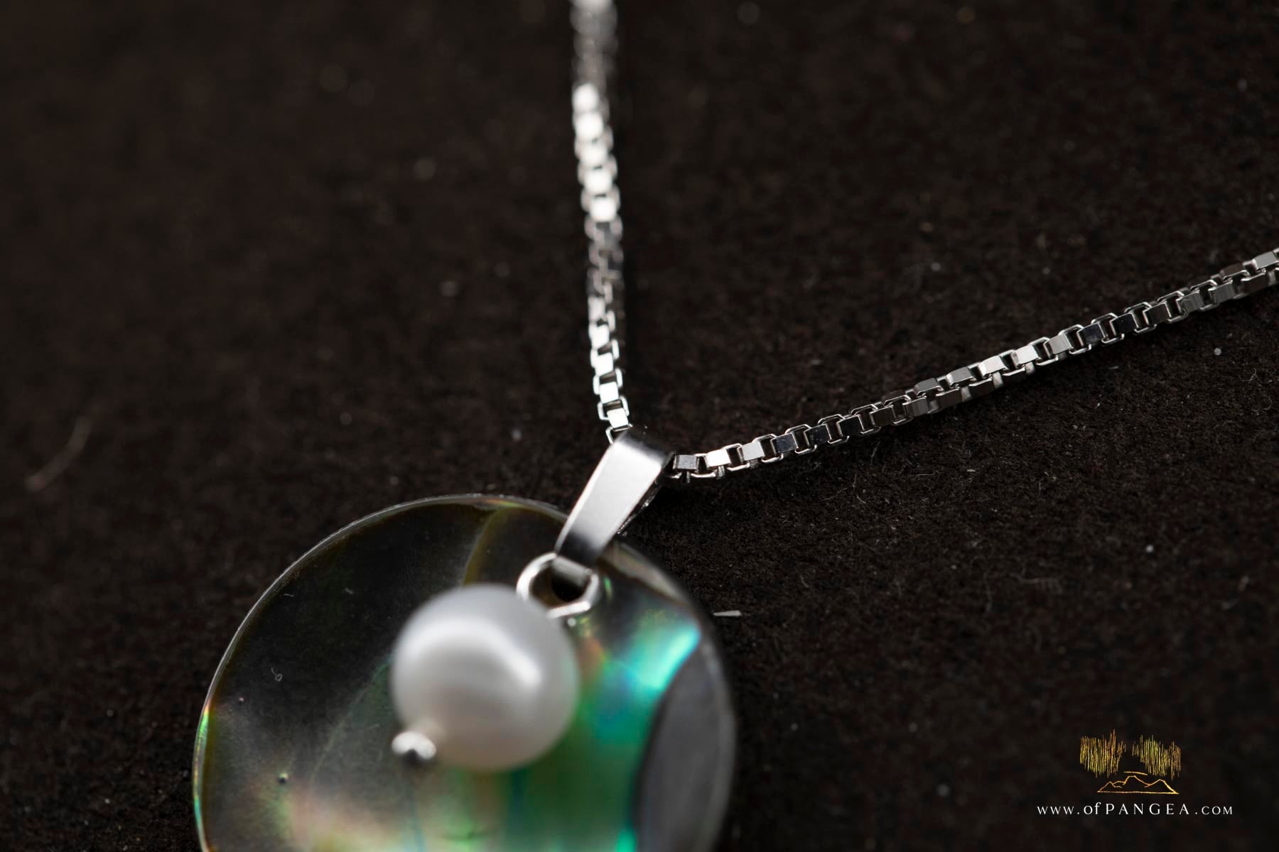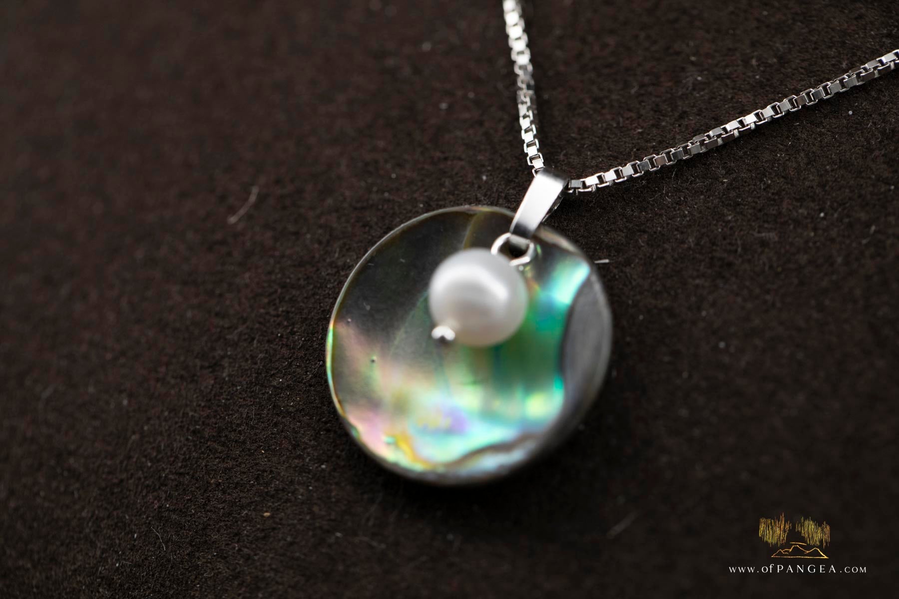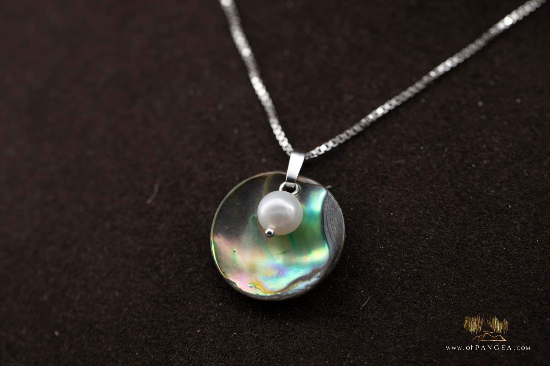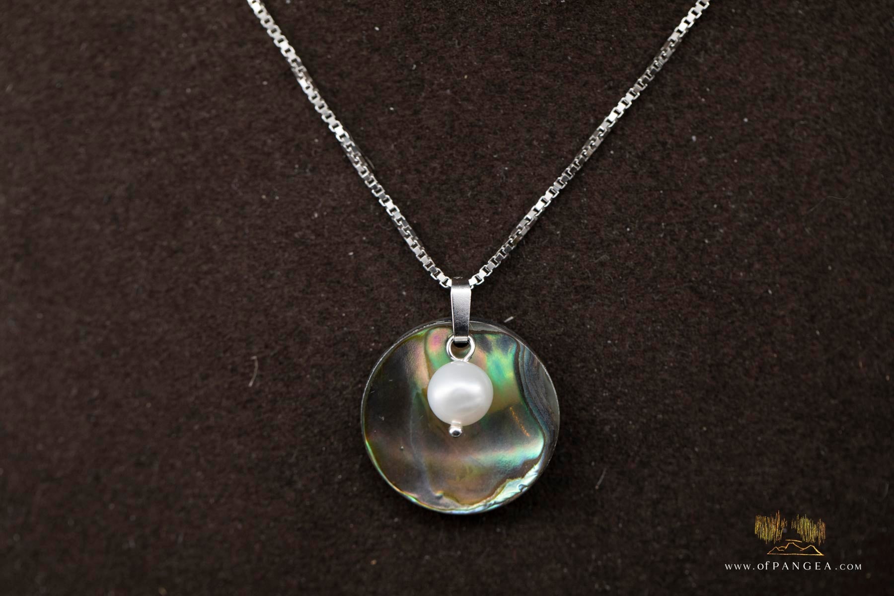 Paua Abalone disc & AAA Pearl necklace - sterling silver || JF951