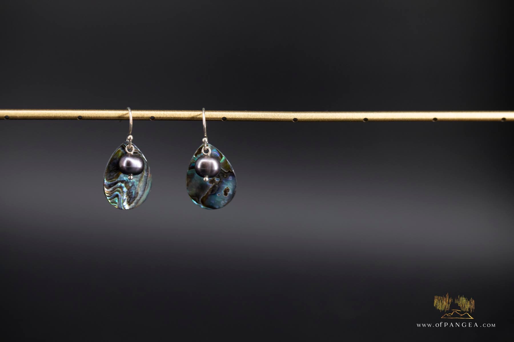 Paua Abalone teardrop earrings & AA Peacock Pearls - sterling silver