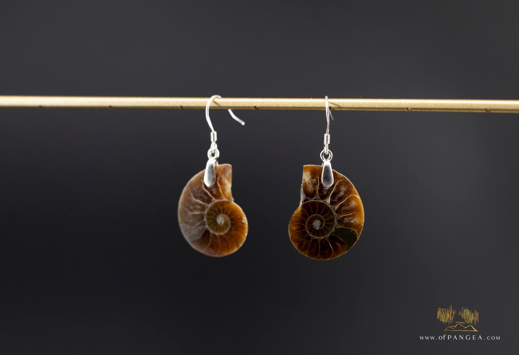 Per-mineralized Ammonite Half Earrings - sterling silver