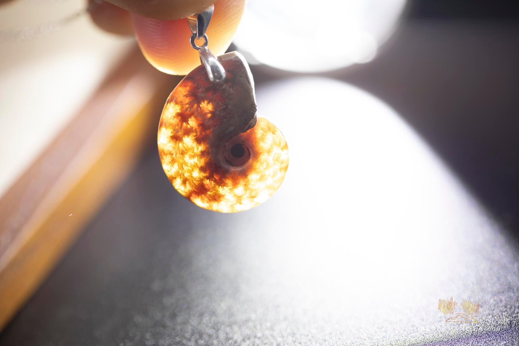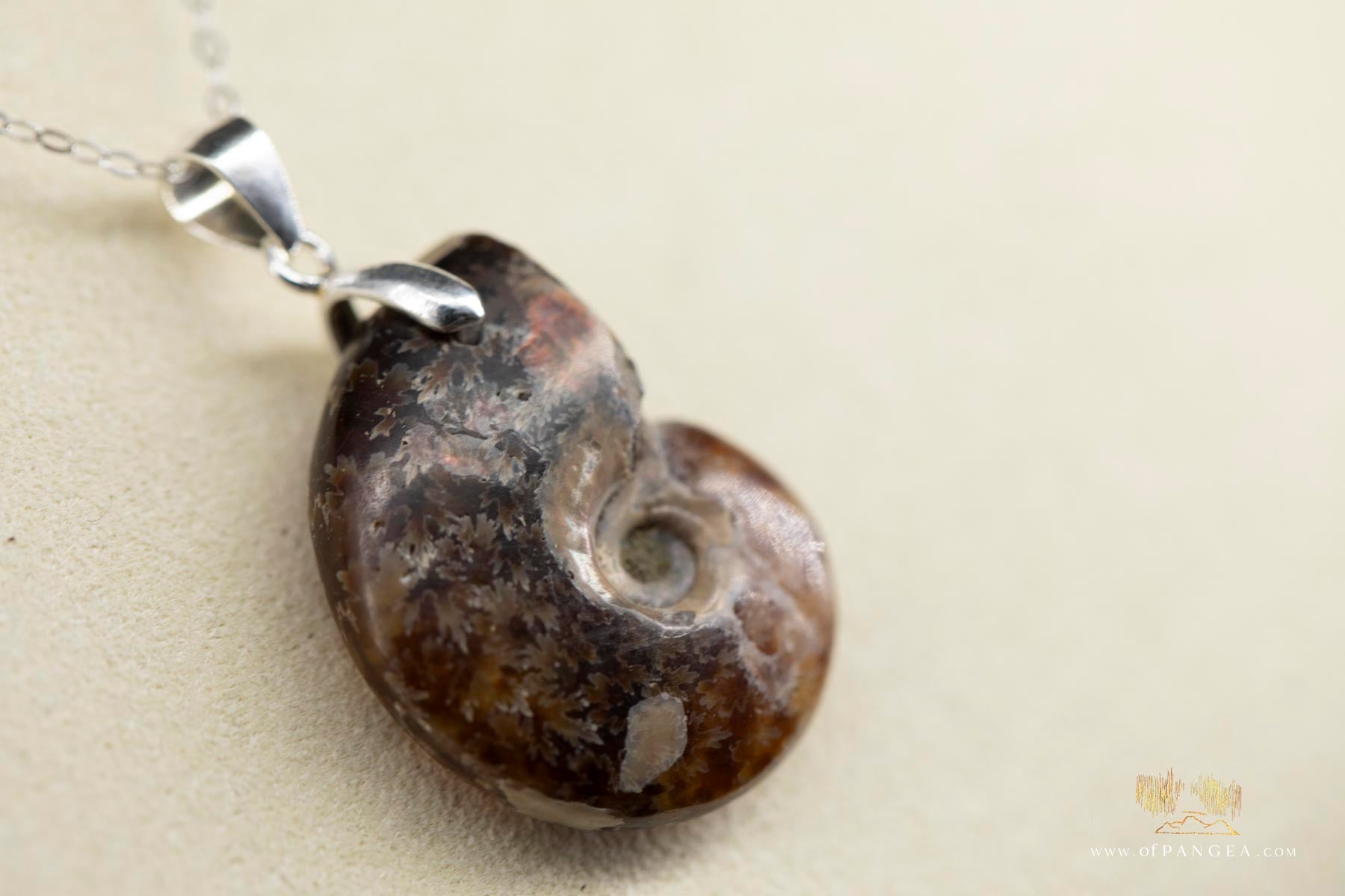 JF692 || Per-mineralized ammonite half necklace (Sm-sized) - Agatized.