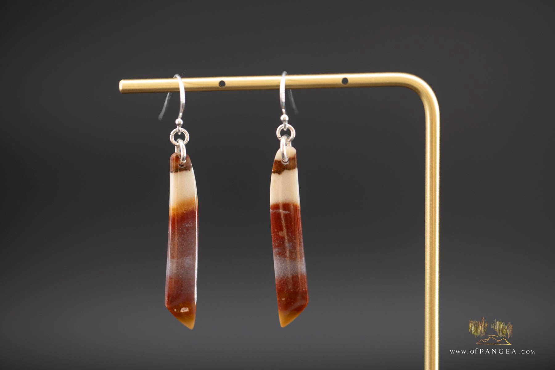 JF864 || Hand-carved per-mineralized petrified wood earring set that has also been opalized with high translucency
