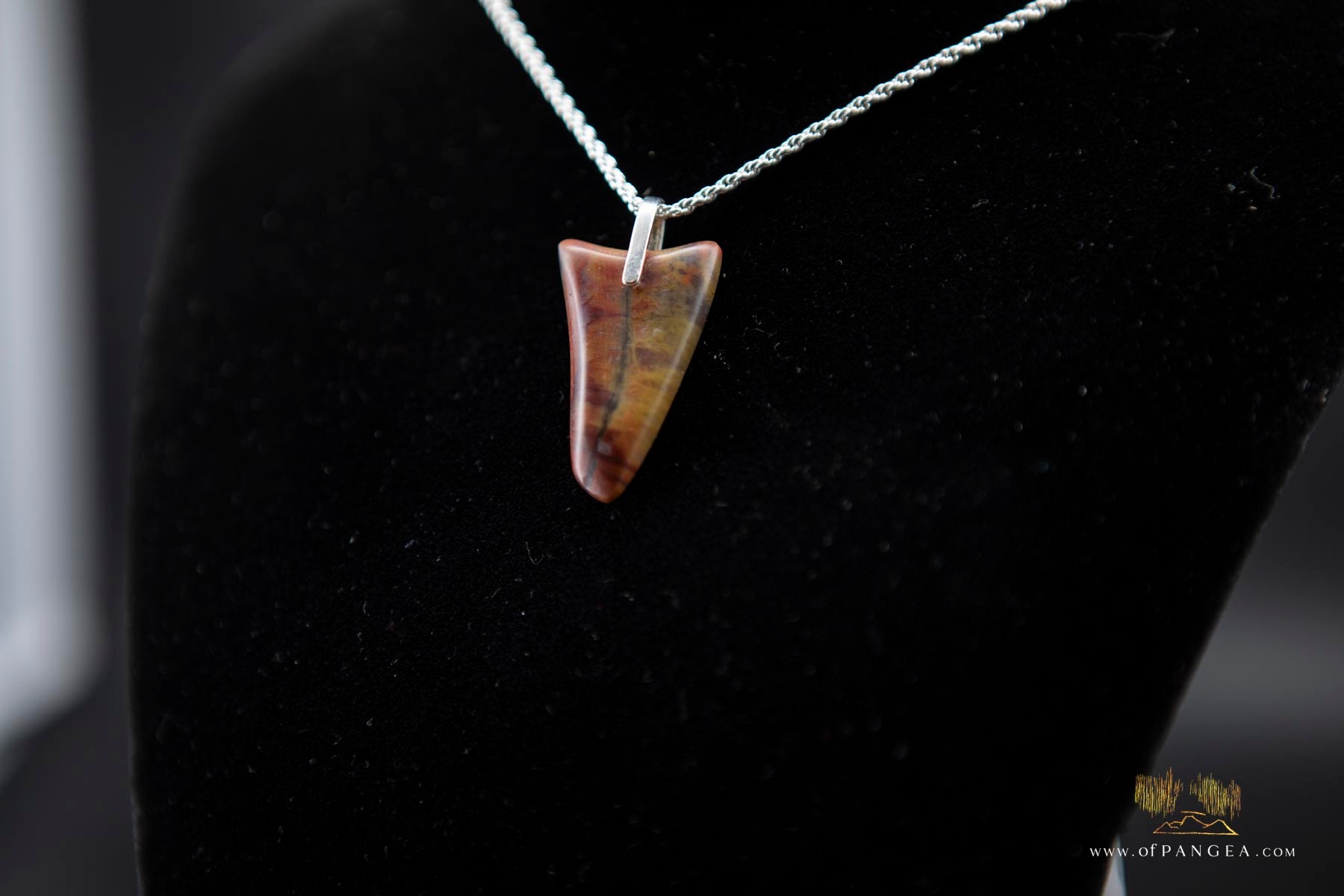 Petrified Wood Pendant & 18inch italian .925 sterling silver rope chain (2mm) || JF774