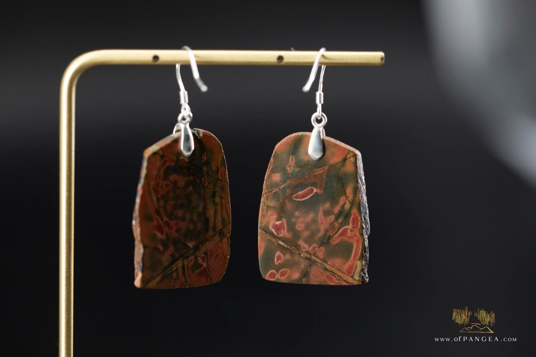JF955 || Picasso Jasper freeform earrings (Red Creek) - each it's own one of a kind mosaic front and back. Medium polish finish.