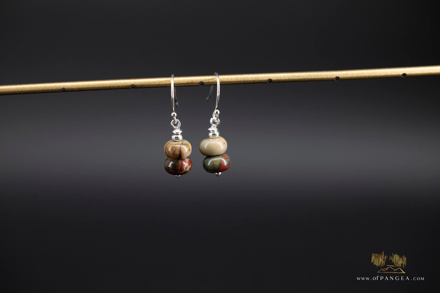 Picasso Jasper Rondelle & sterling silver bead earrings (Red Creek) || JF895