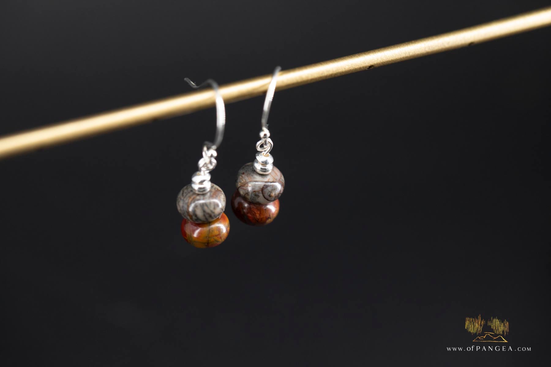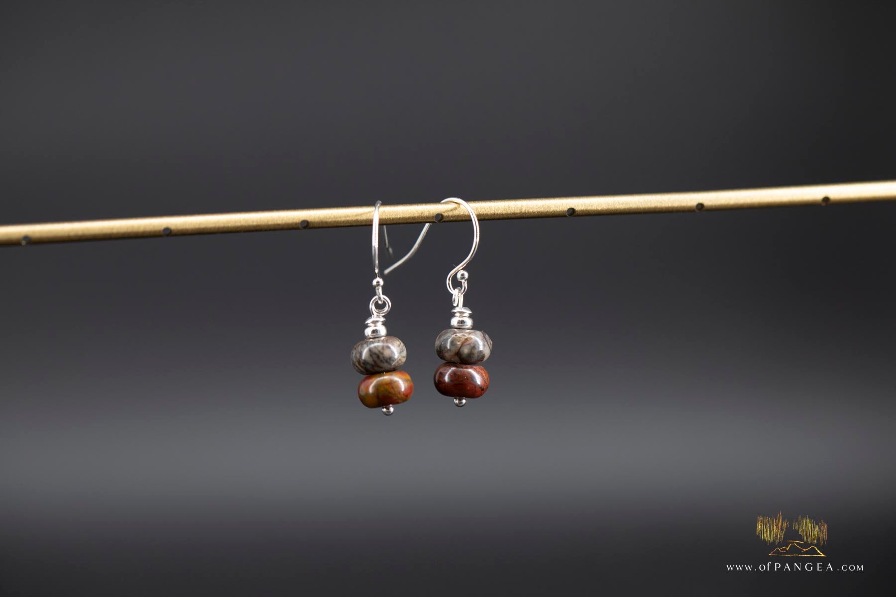 Picasso Jasper Rondelle & sterling silver bead earrings (Red Creek) || JF896