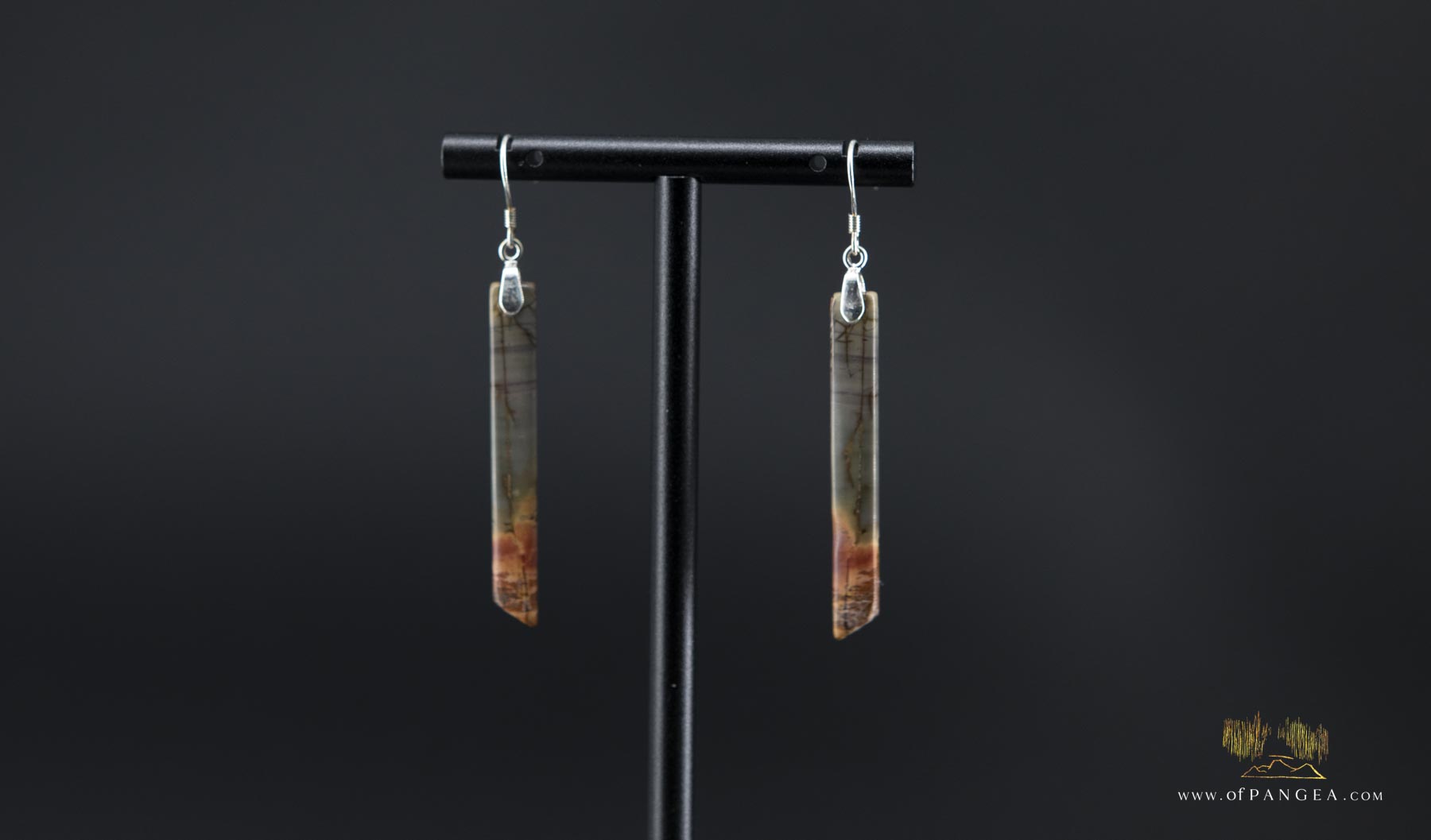 Picasso Jasper slim pillar earrings (Red Creek) - Sterling Silver