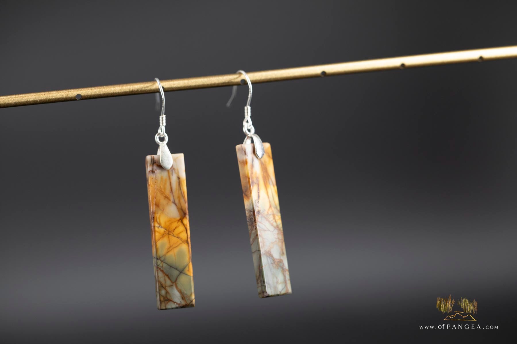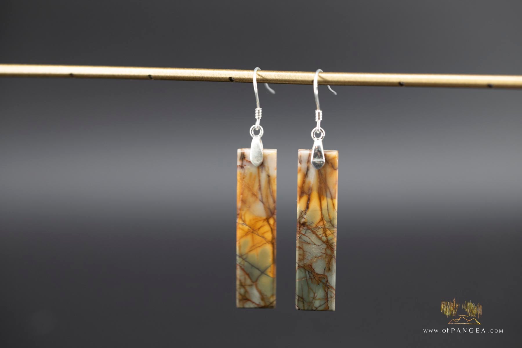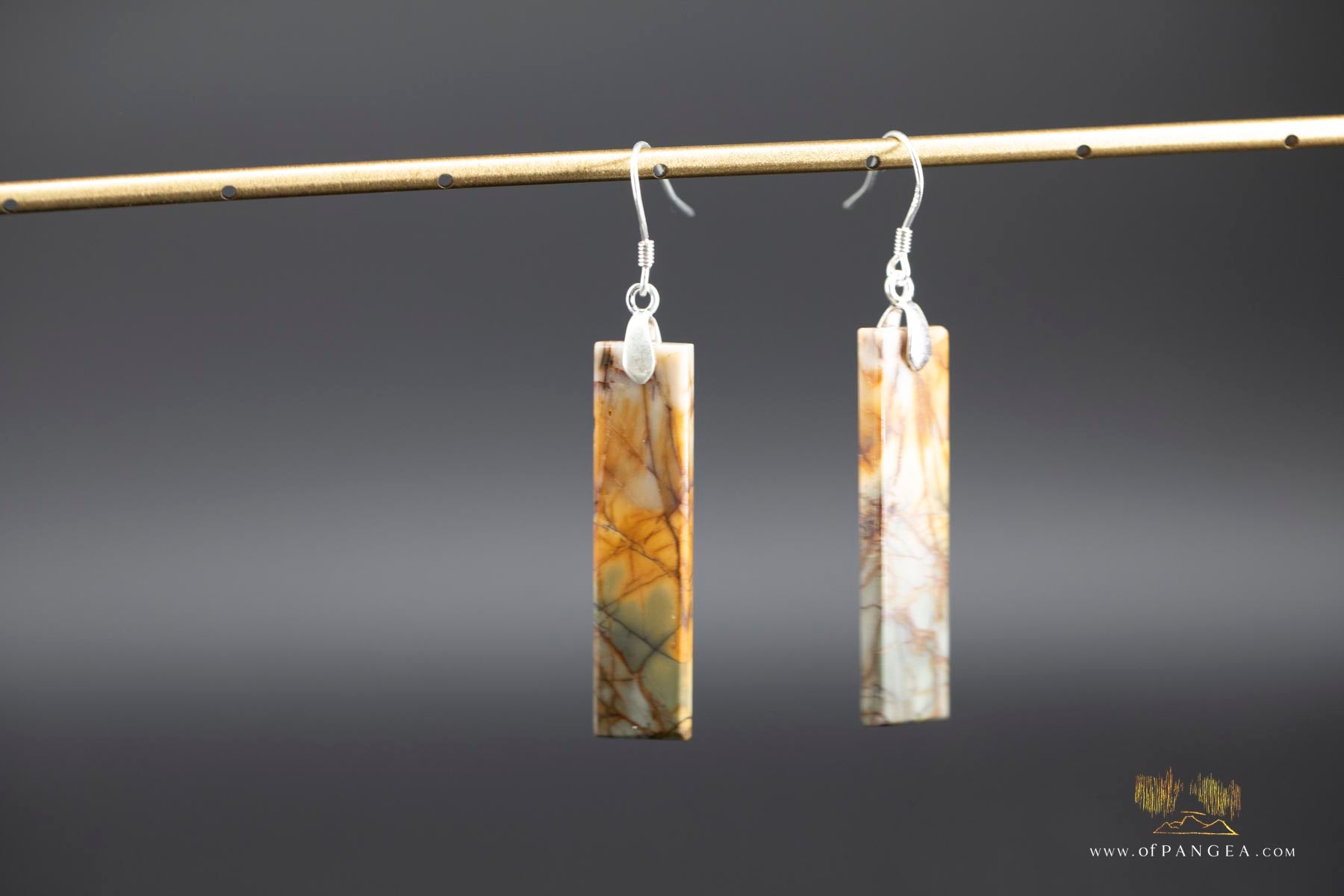 Picasso Jasper slim rectangle earrings (Red Creek) - Sterling Silver