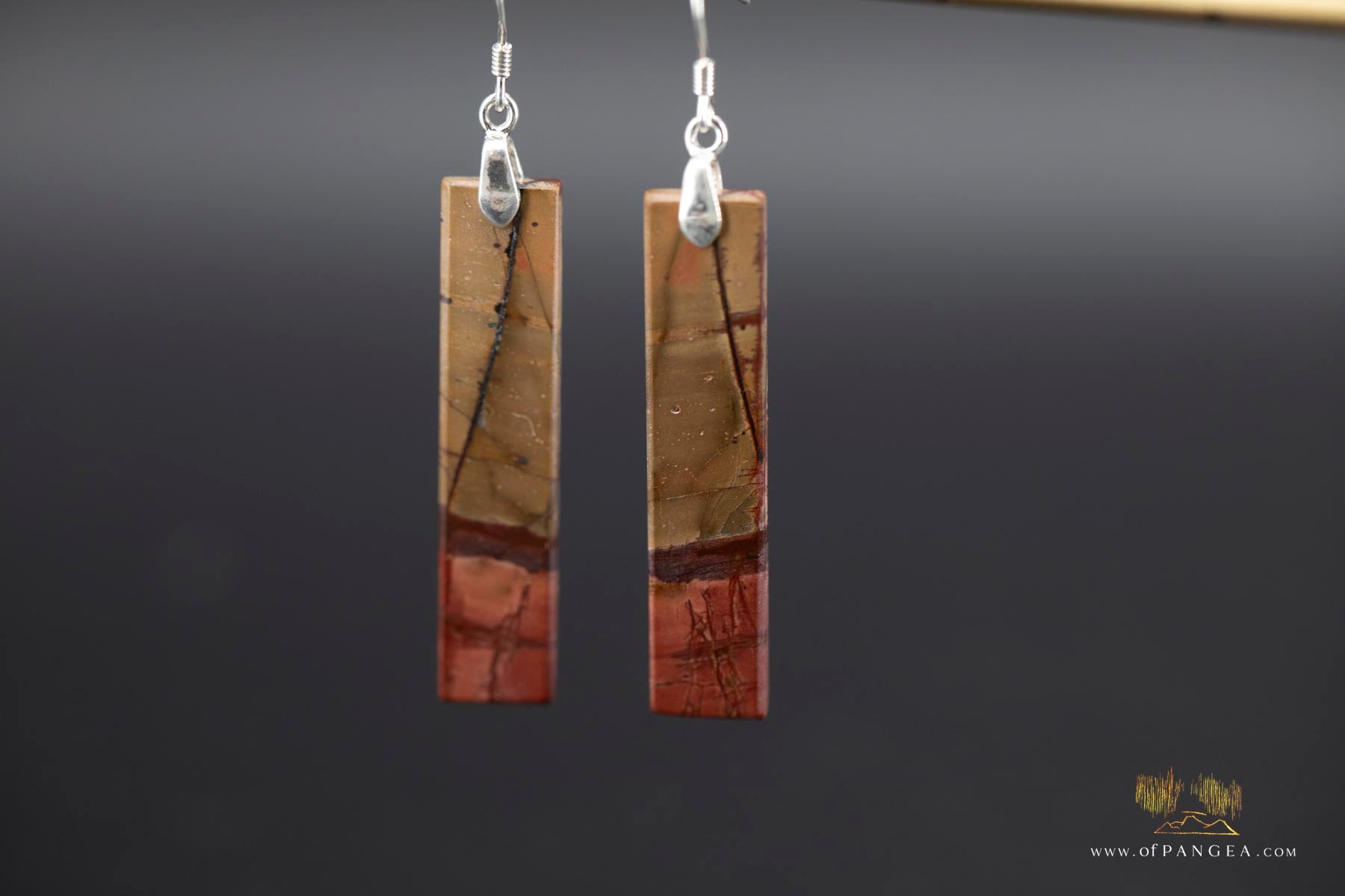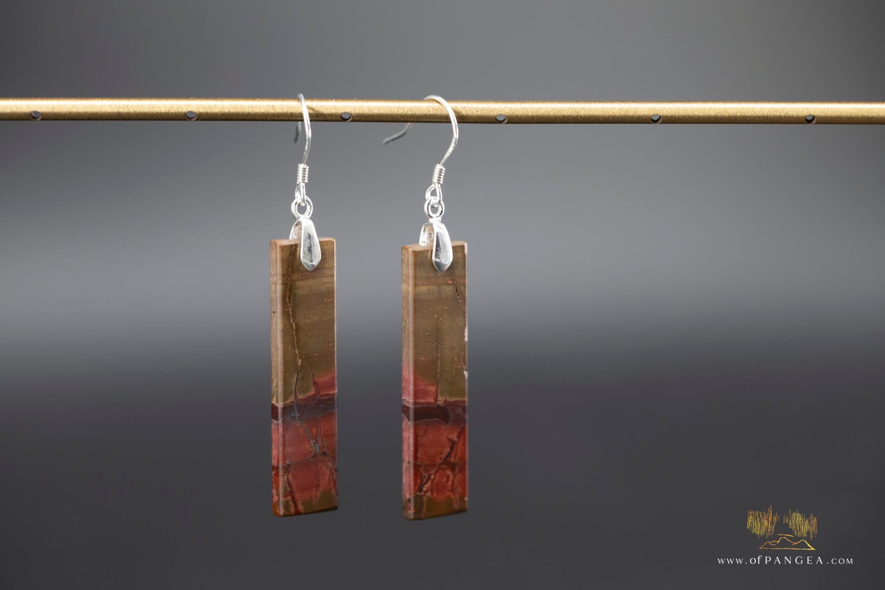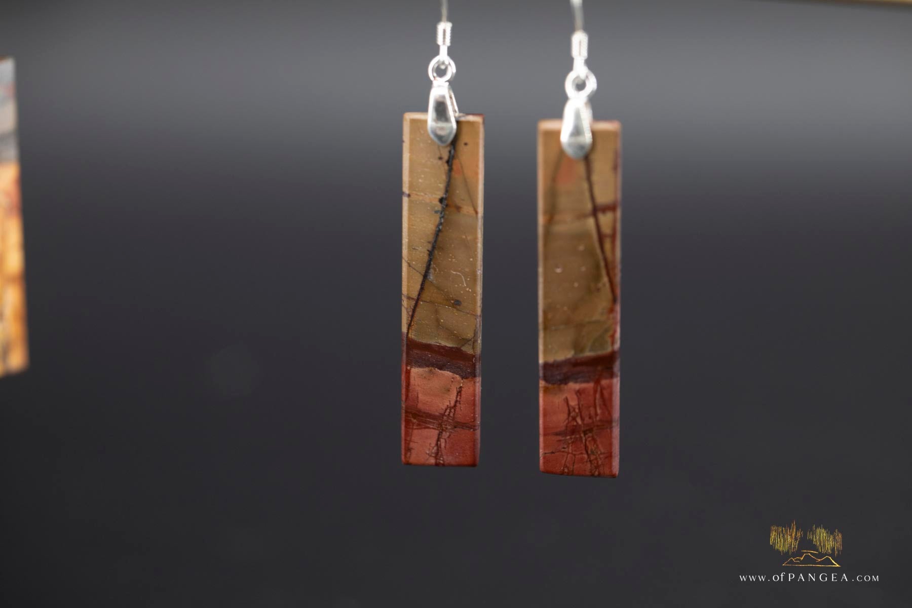 Picasso Jasper slim rectangle earrings (Red Creek) - Sterling Silver