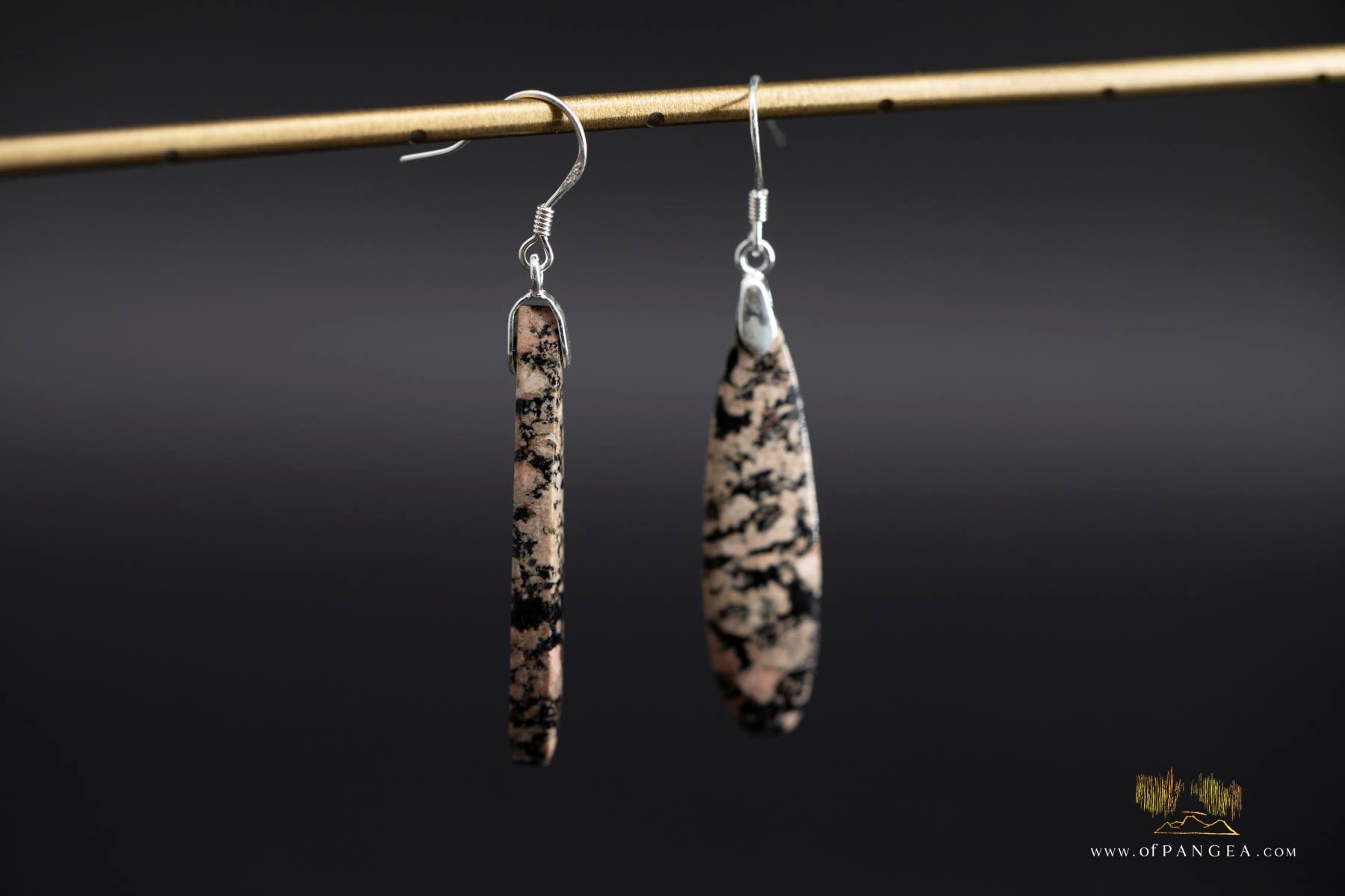 Gorgeous Pink snowflake Obsidian teardrop earrings - Sterling Silver - each teardrop has its own patterns and a variety of pictures are shown to depict the amount. Medium polish finish.
