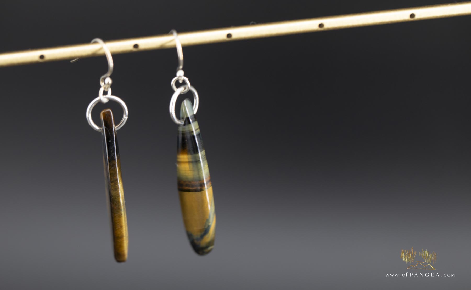 Rare bicolor Blue & Gold Tigers Eye teardrop earrings - Sterling Silver - each teardrop has is own dancing patterns and a variety of pictures are shown to depict the gradients. High polish finish.