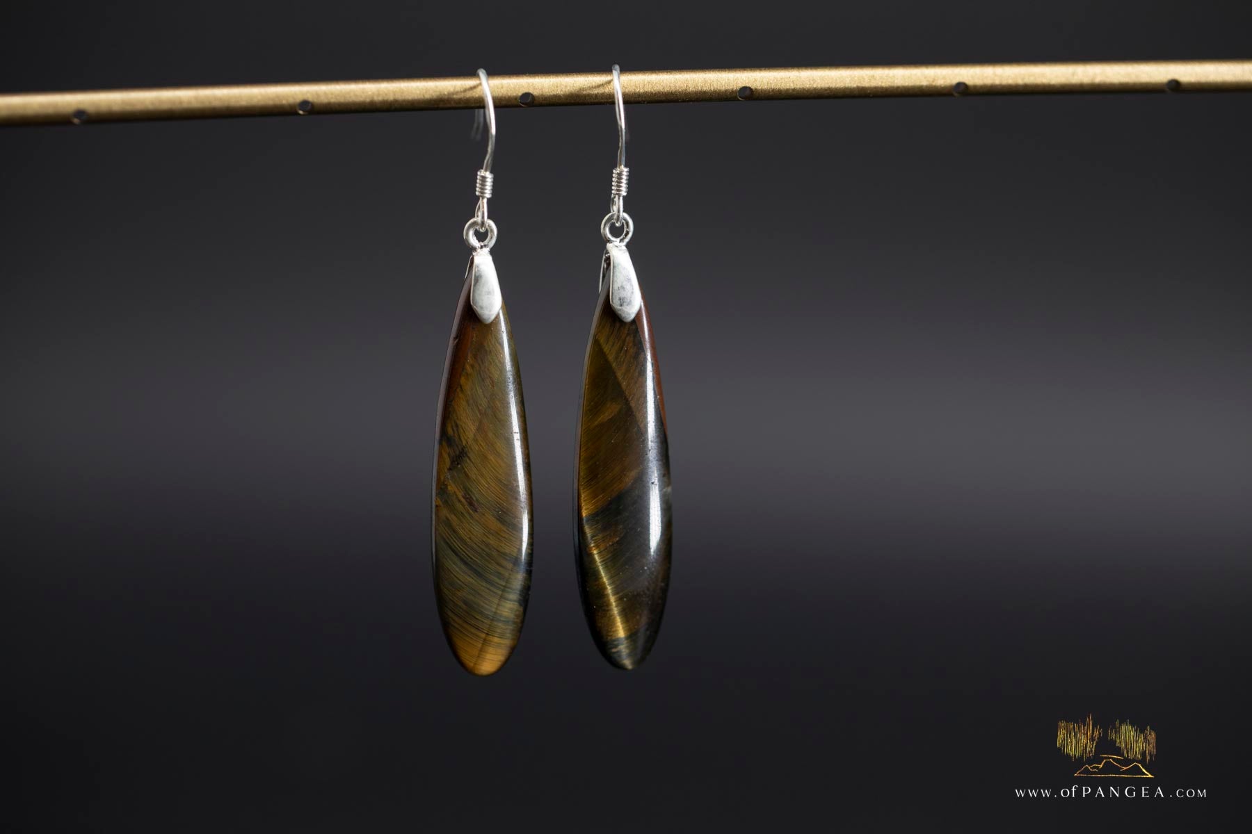 Rare bicolor Blue & Gold Tigers Eye teardrop earrings - Sterling Silver