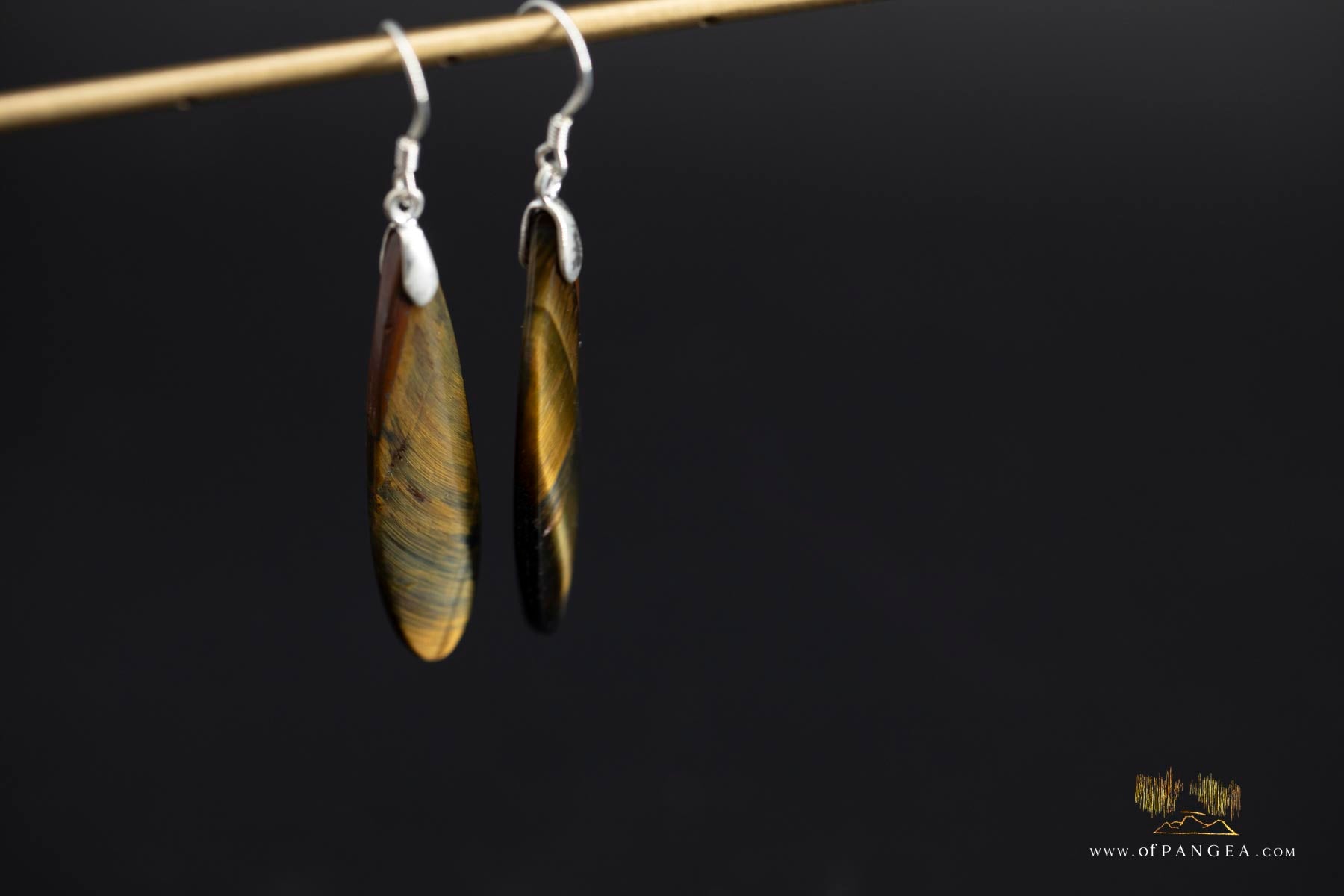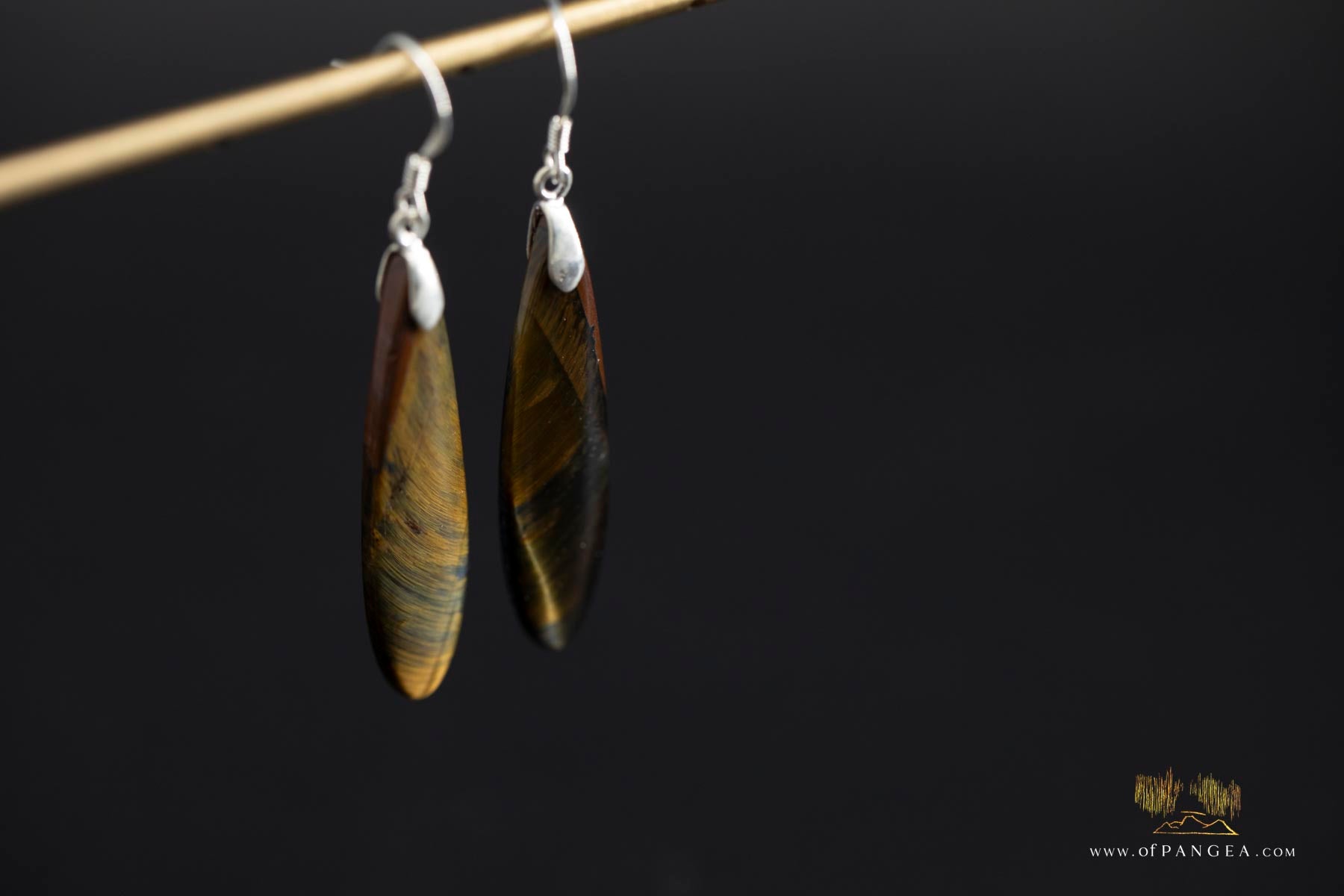 Rare bicolor Blue & Gold Tigers Eye teardrop earrings - Sterling Silver - each teardrop has is own dancing patterns and a variety of pictures are shown to depict the gradients. High polish finish.