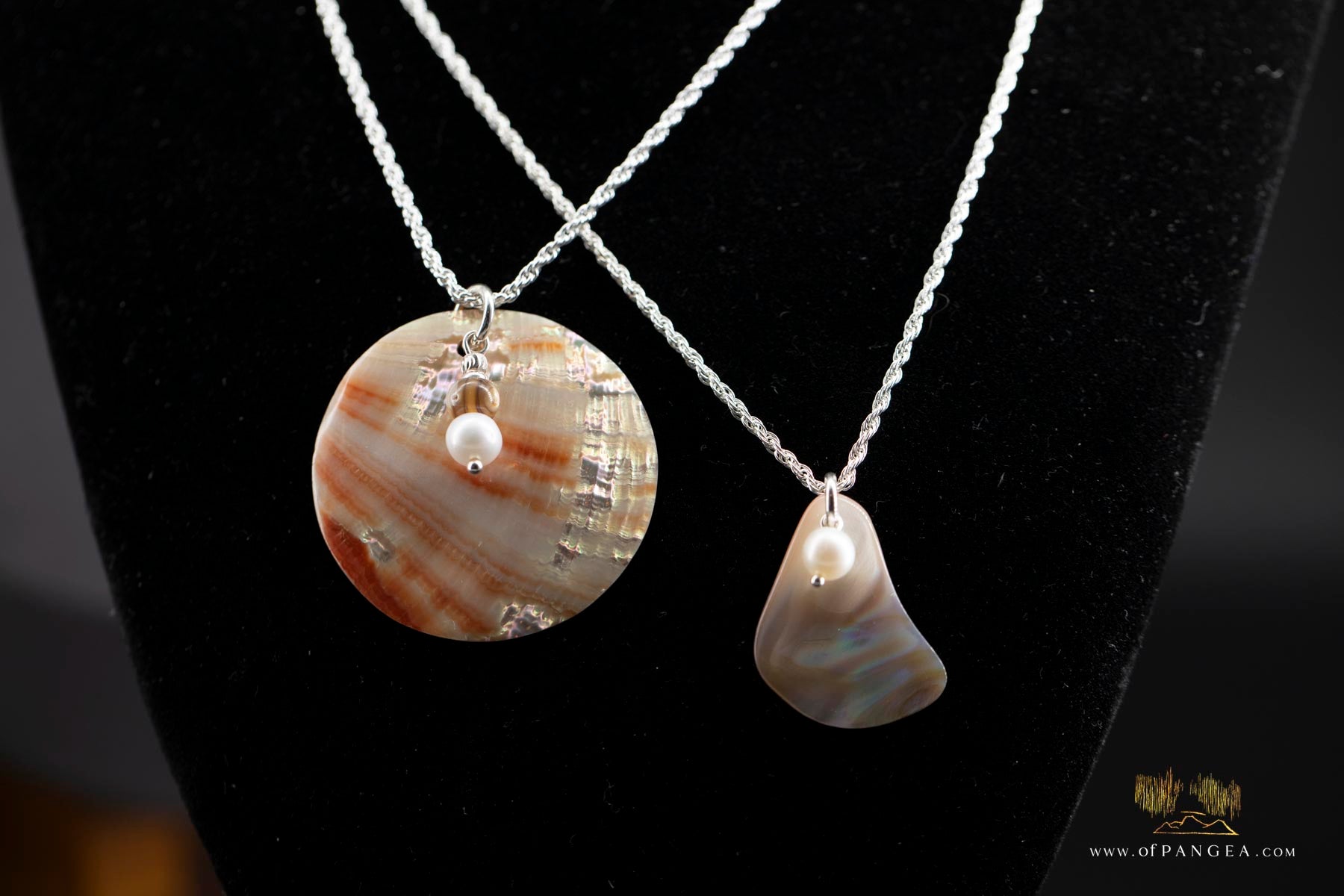 I like to present many photos of abalone and mother of pearl jewelry so that the iridescence and color varieties can be seen.