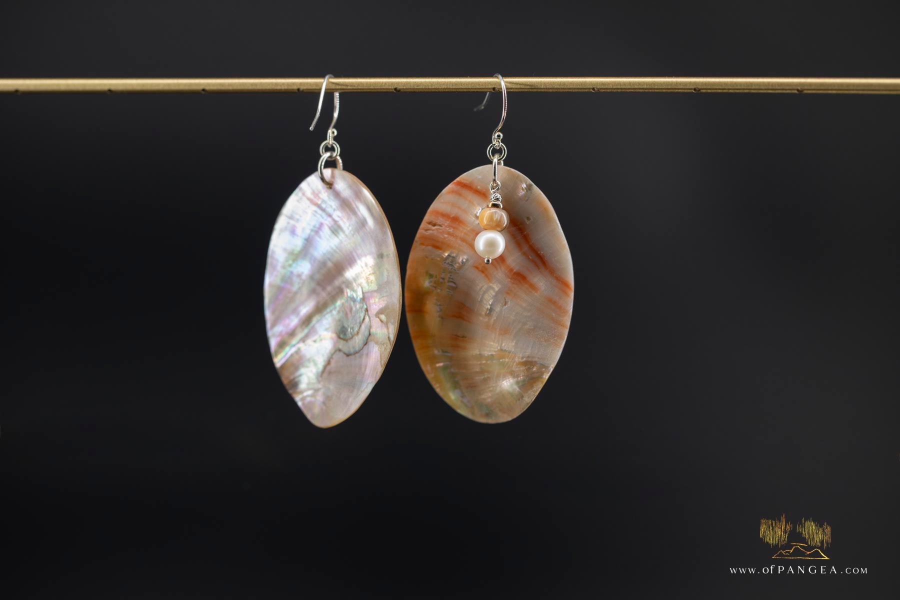 I like to present many photos of abalone and mother of pearl jewelry so that the iridescence and color varieties can be seen. Front and back shown.