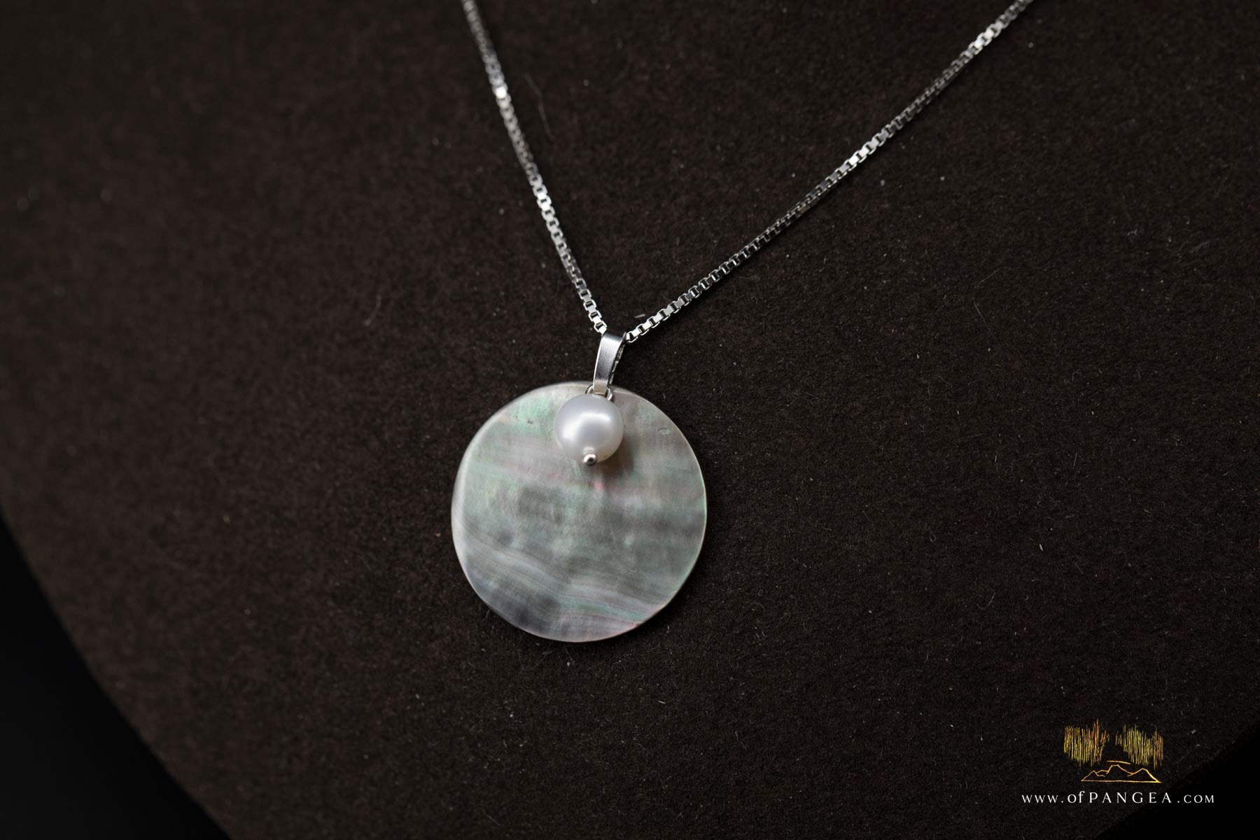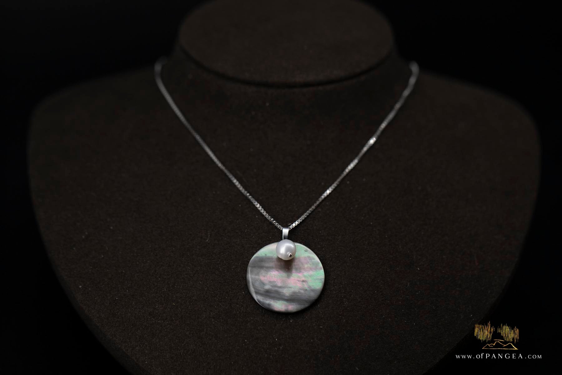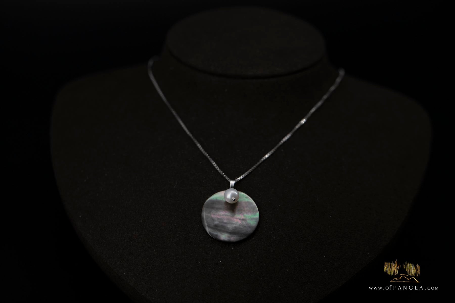 Tahitian Black-Lipped Mother of Pearl disc - AAA- pearl Necklace - sterling silver || JF953