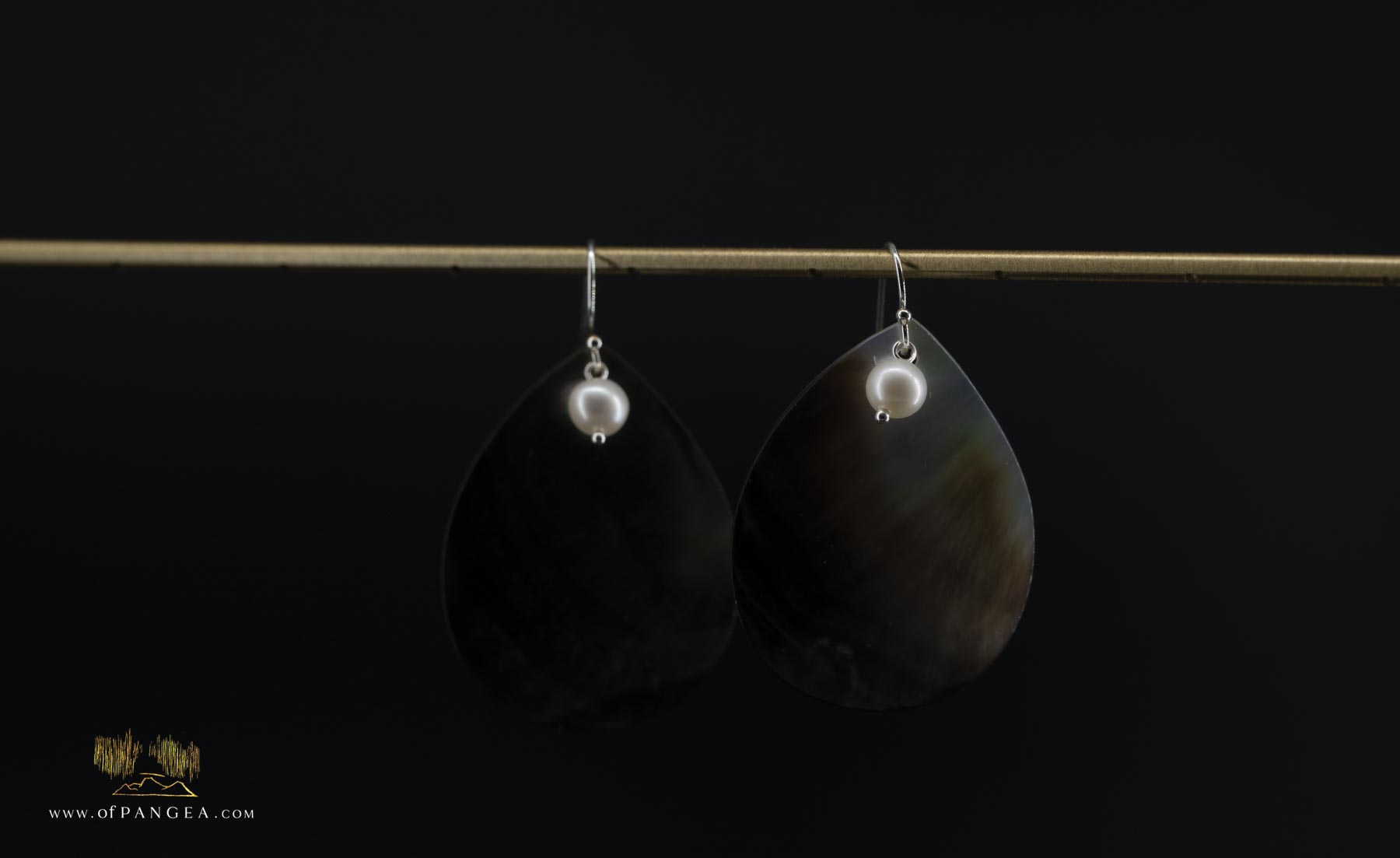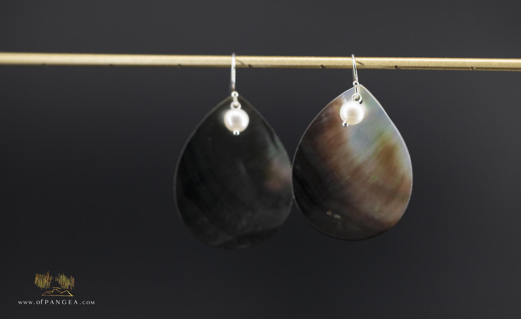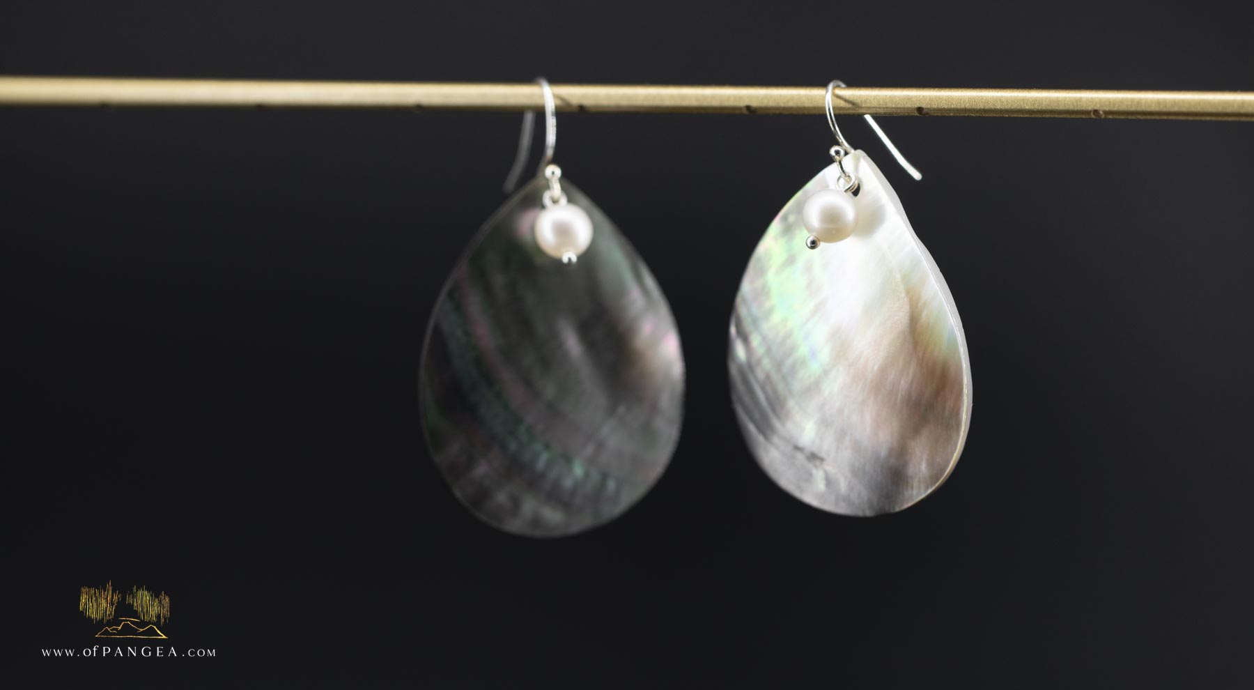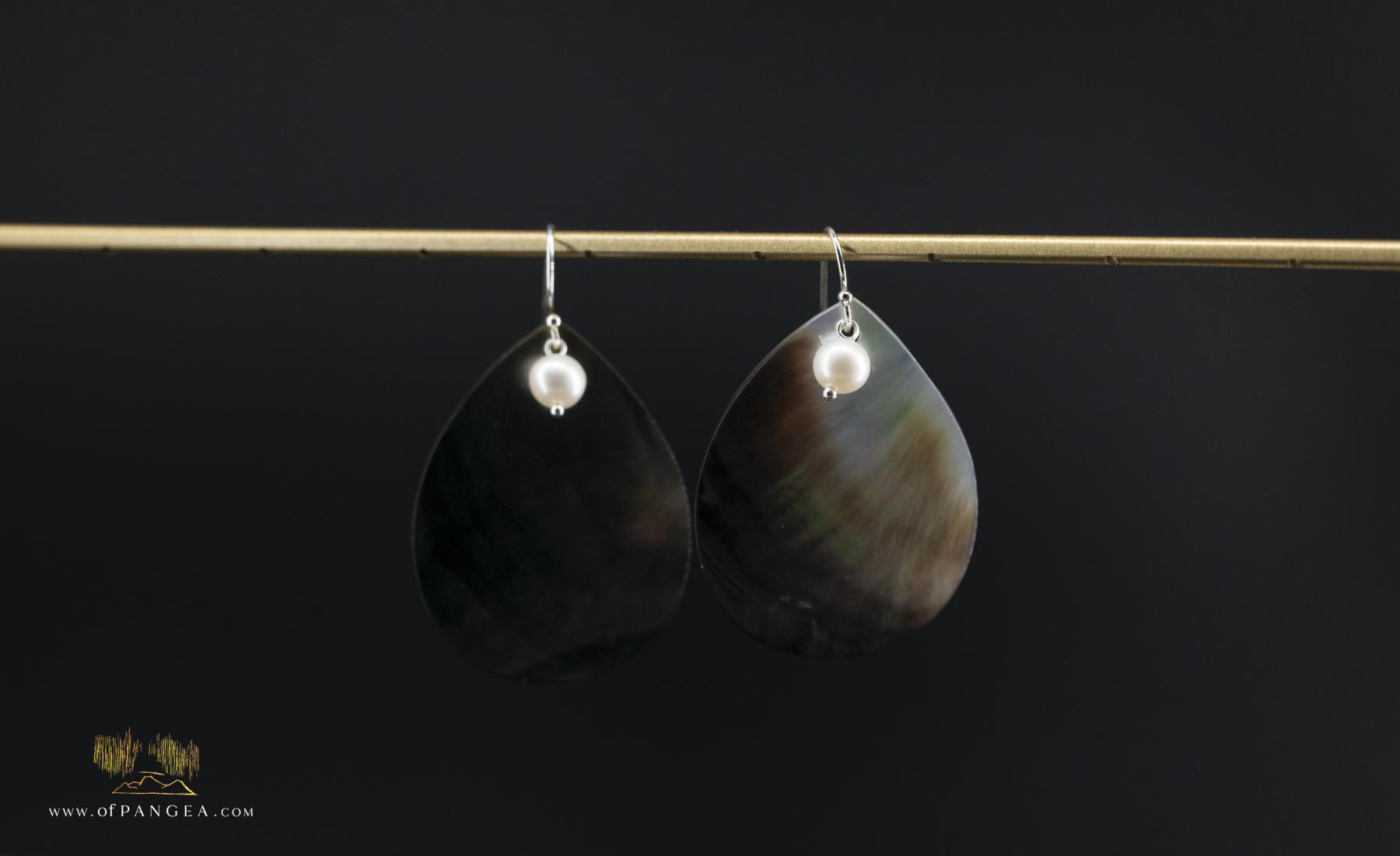 With stunning iridescence from these shells, these size-able teardrop earrings transition from black through rainbow to white depending on the angle of light which makes them incredibly stunning as earrings.