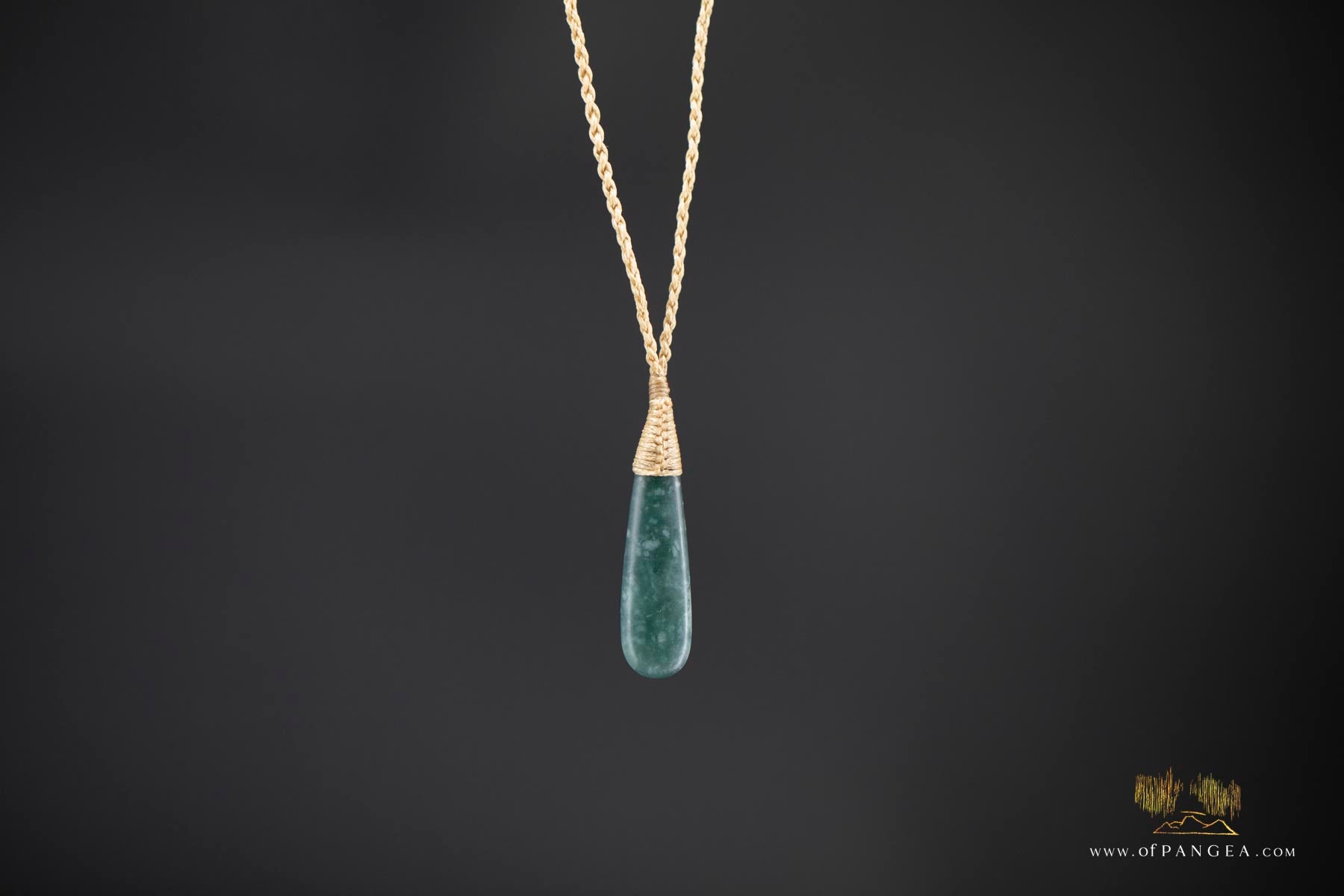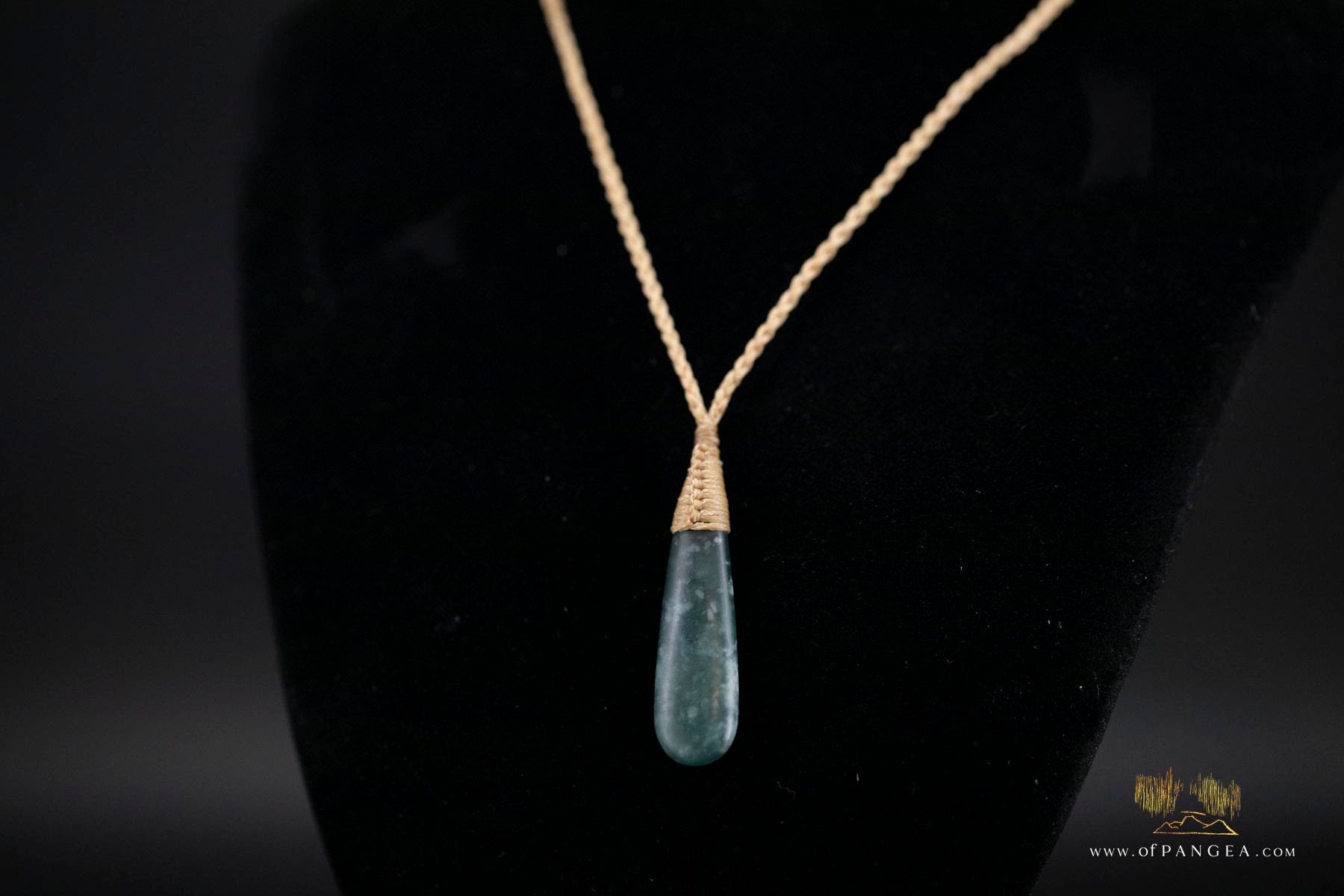 JF672 || Hand-carved Teardrop Roimata - from Guatemalan Princesa Jadeite by artist Joe Foster - strung on a four plaited white waxed cord with adjustable sliding knots