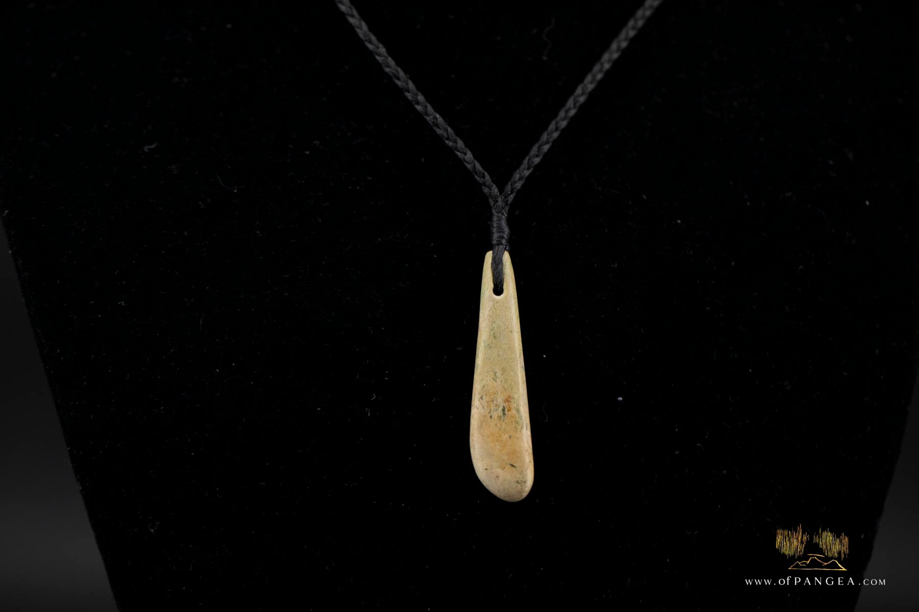 JF577 || Hand-carved Teardrop Roimata - from New Zealand sacred raukaraka Pounamu Nephrite Jade (known as flower jade) by artist Joe Foster - strung on a three plaited black waxed cord with adjustable sliding knots