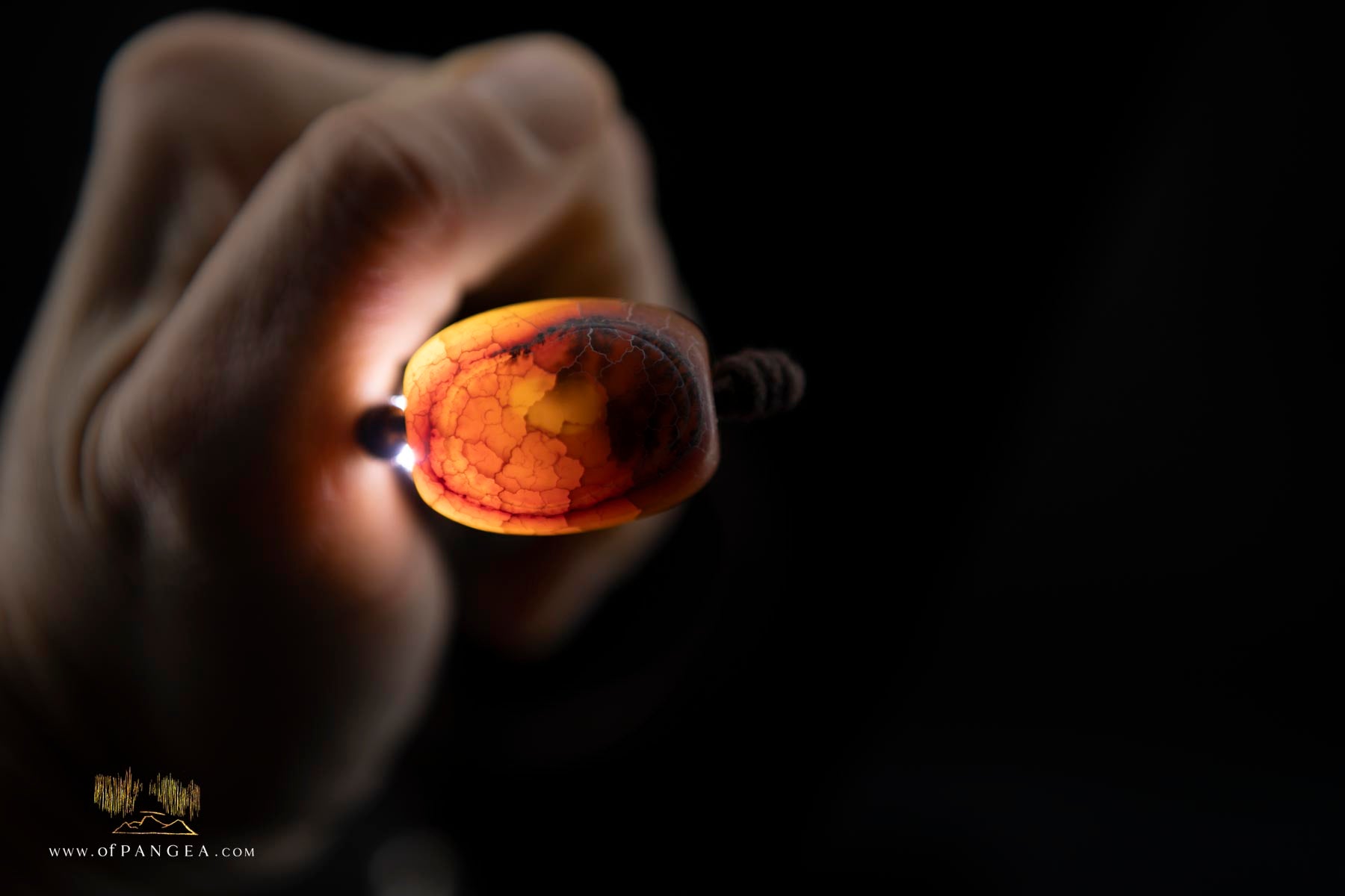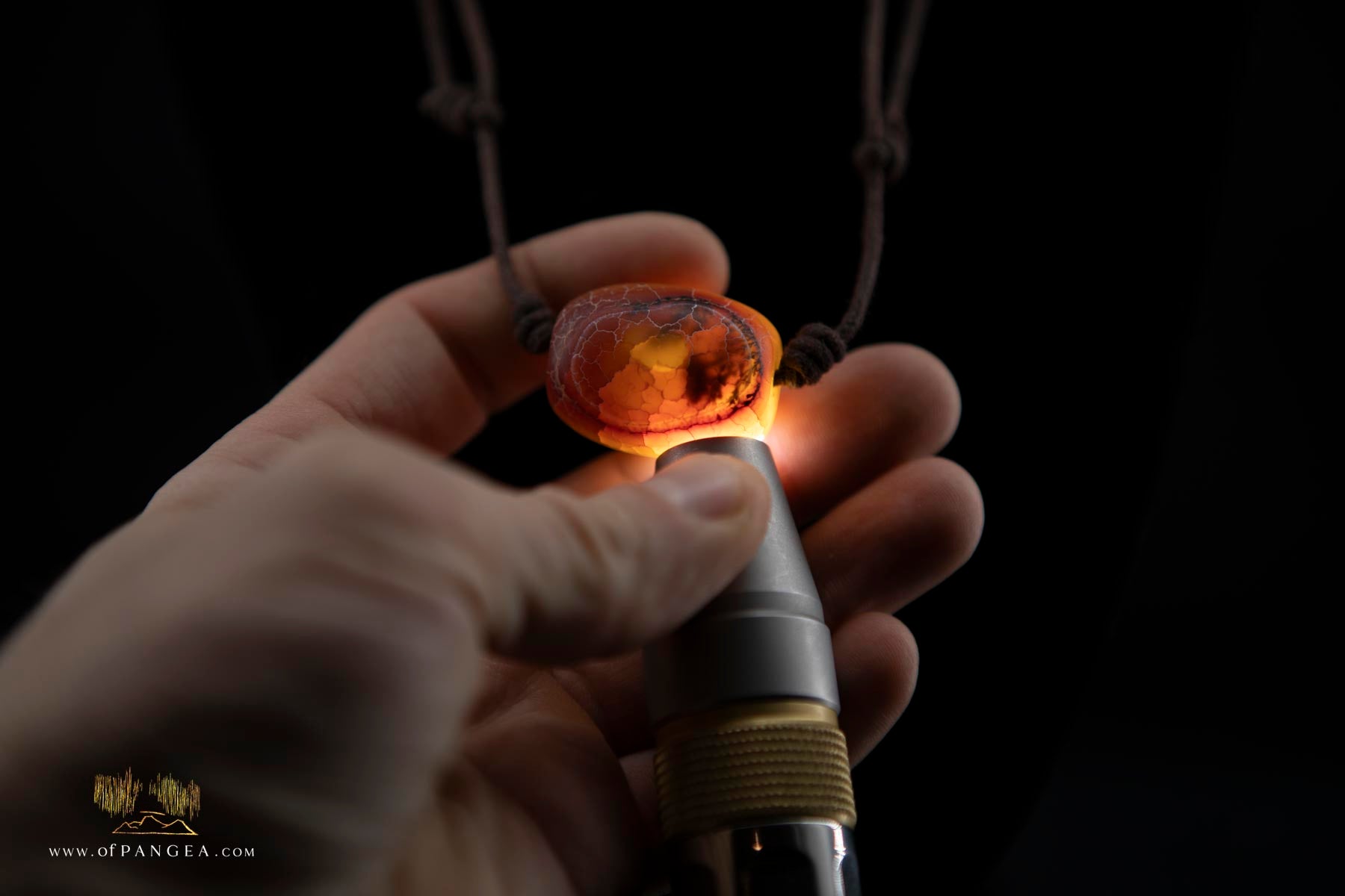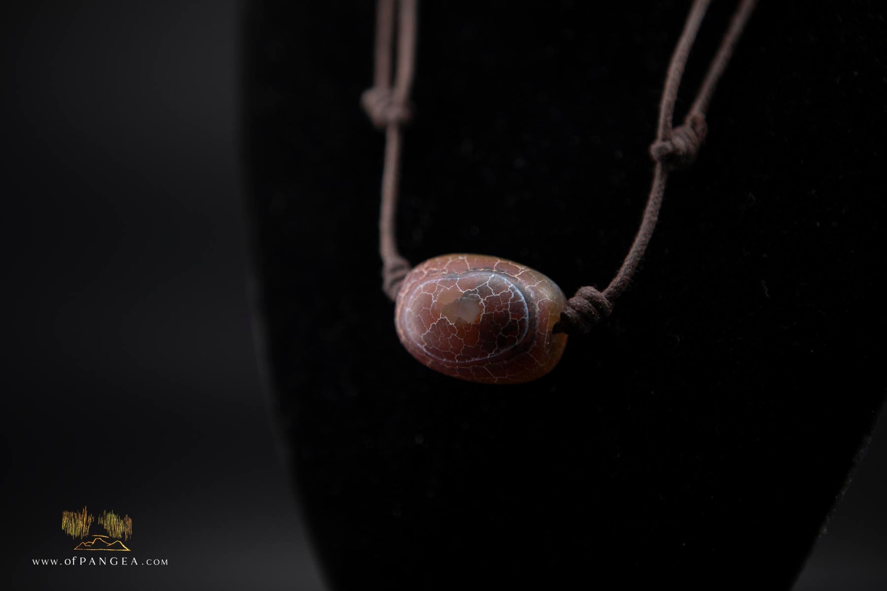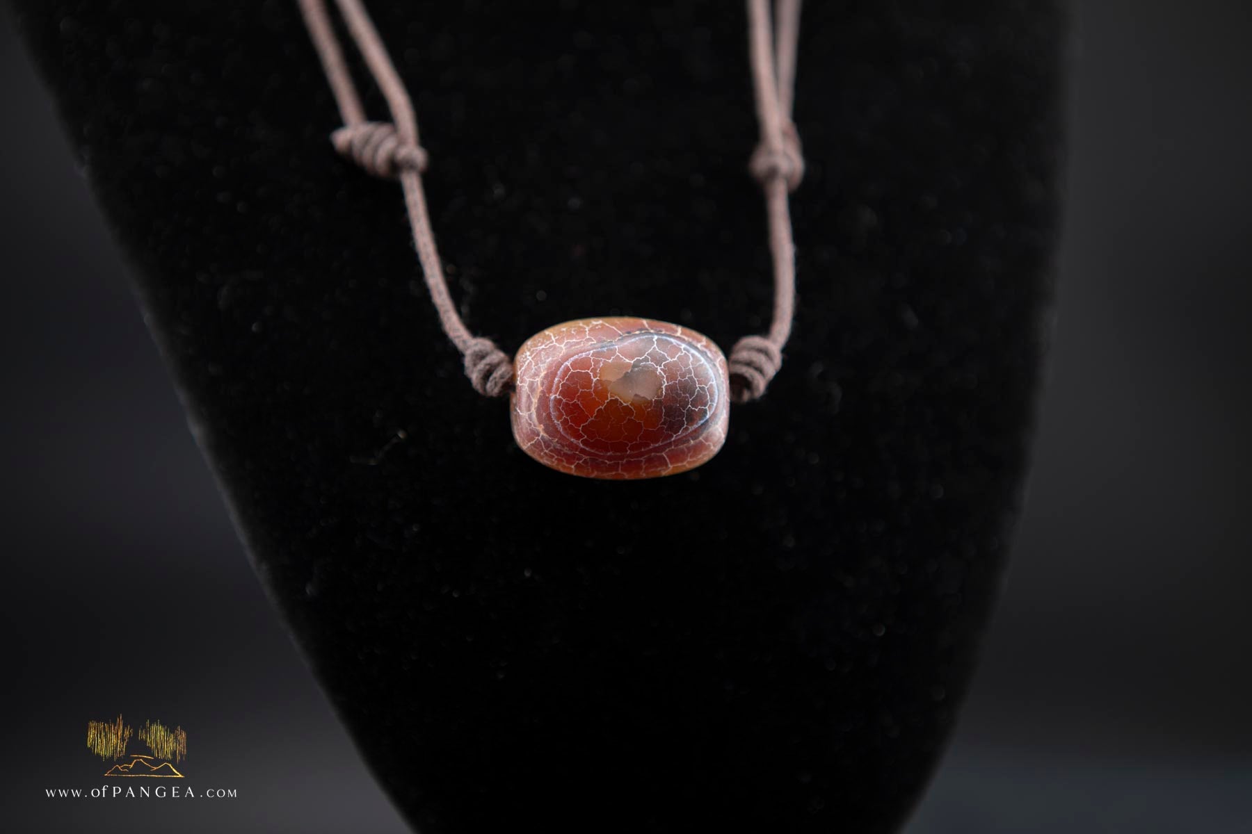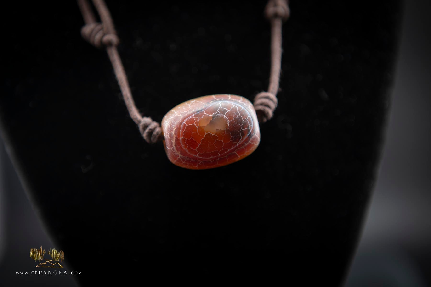 Strung on waxed cotton cord (2mm) with adjustable length sliding knots