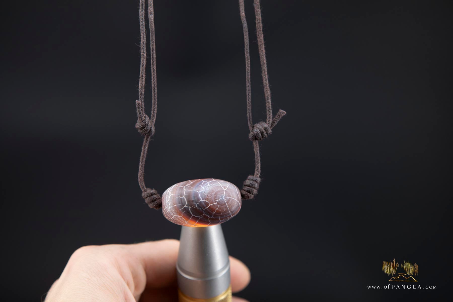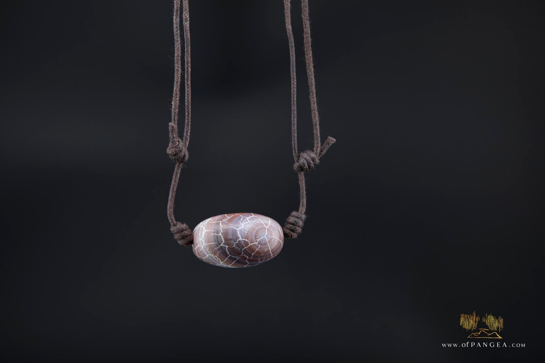 Strung on waxed cotton cord (2mm) with adjustable length sliding knots
