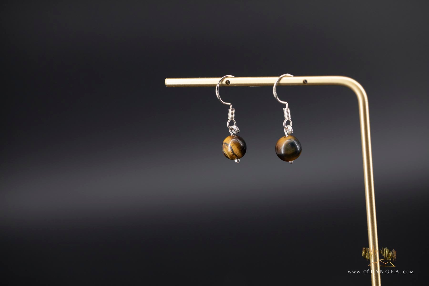 Tiger's Eye round bead Earrings - sterling silver || JF475