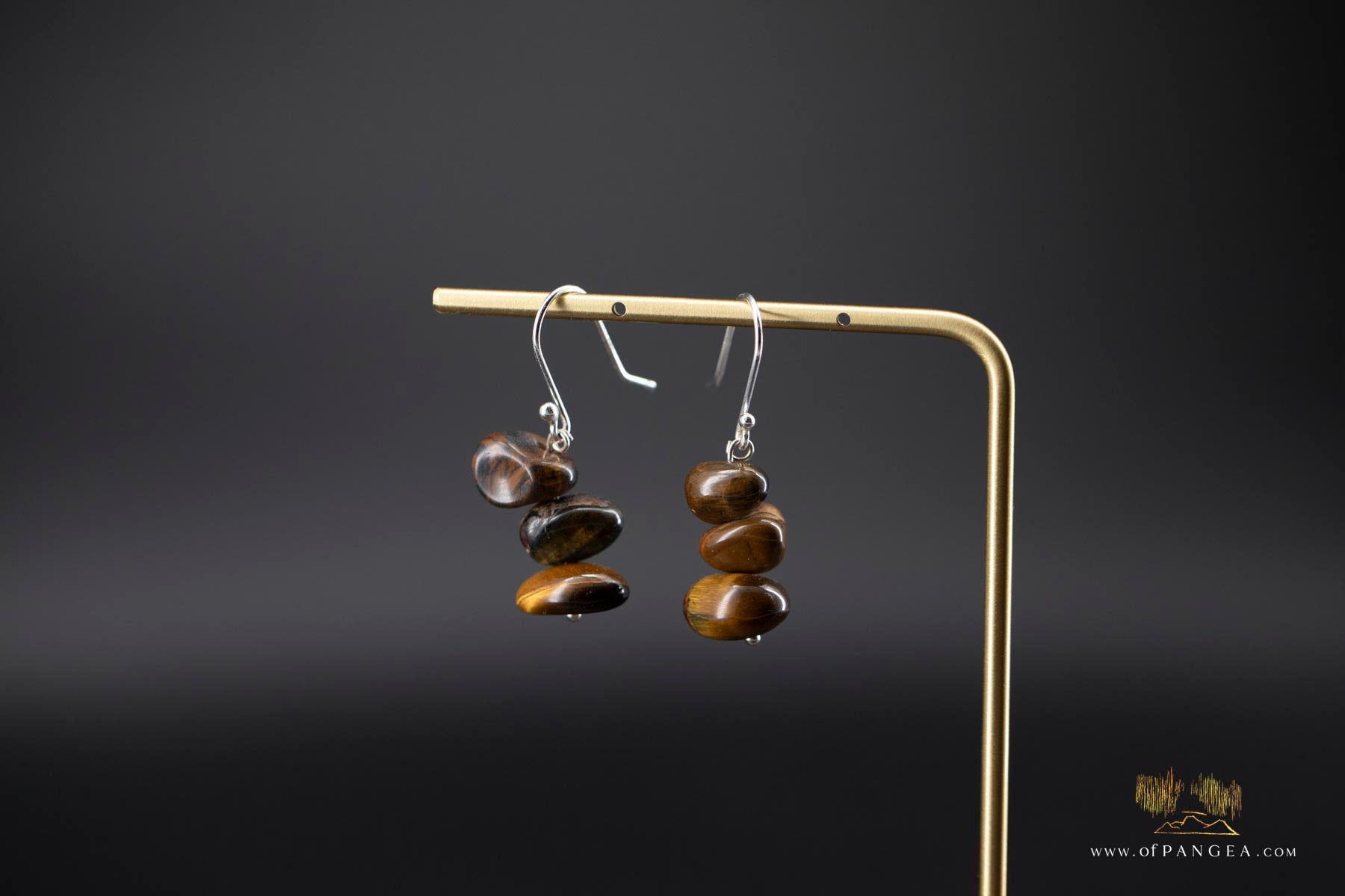 Tiger's Eye Three 'River Pebble Stack' Earrings - sterling silver || JF497