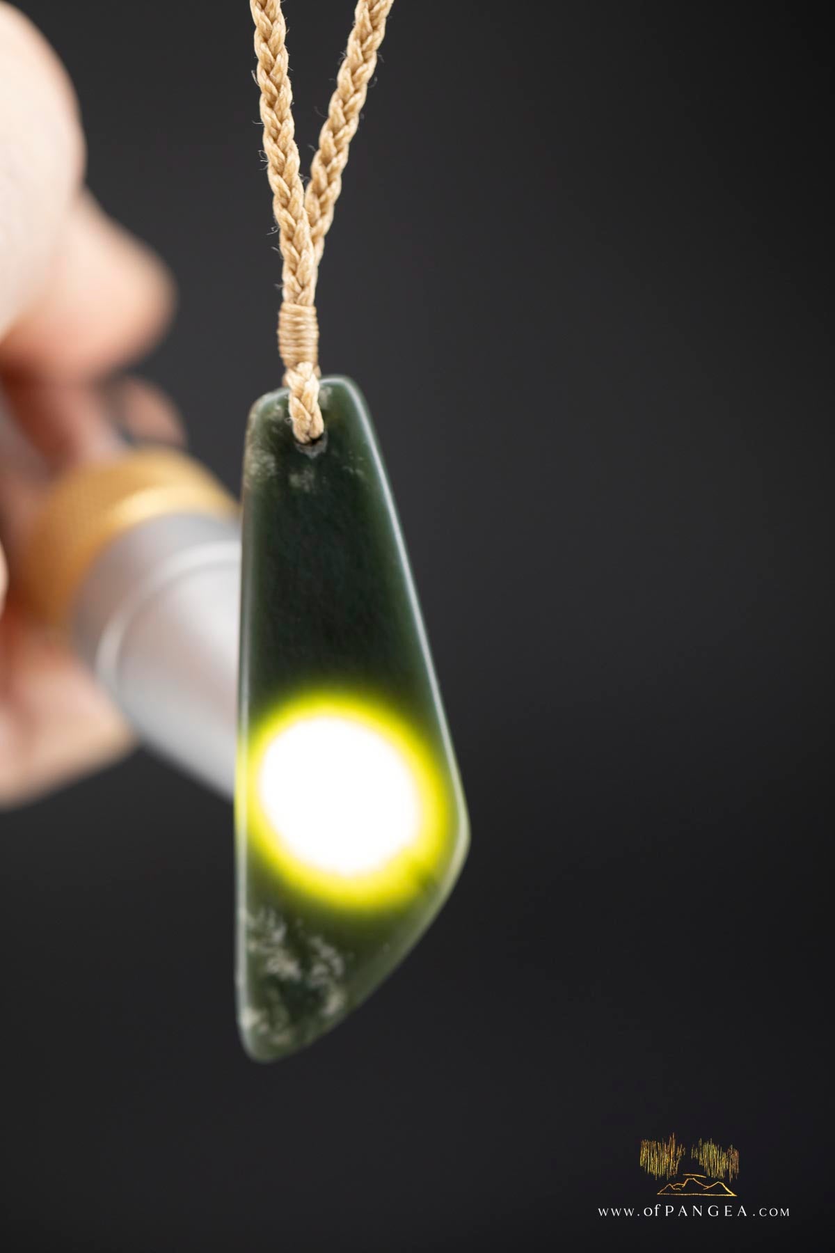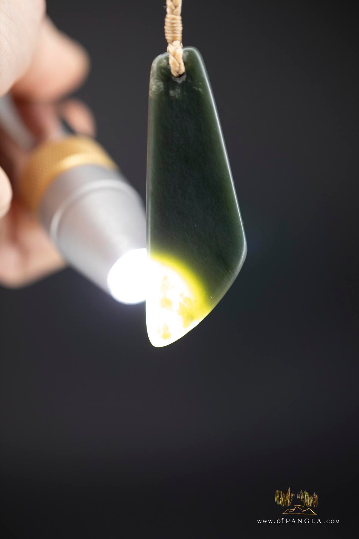 Large Toki - Wyoming Olive snowflake Nephrite Jade - woven tan muka cord || JF905