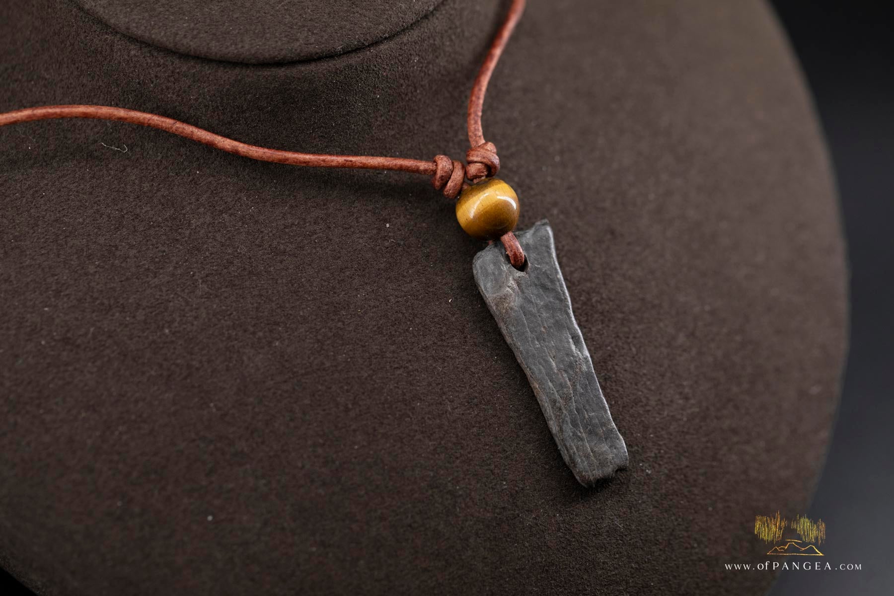 Woolly Mammoth Tusk Pendant - Tiger's Eye Beads - Necklace || JF535
