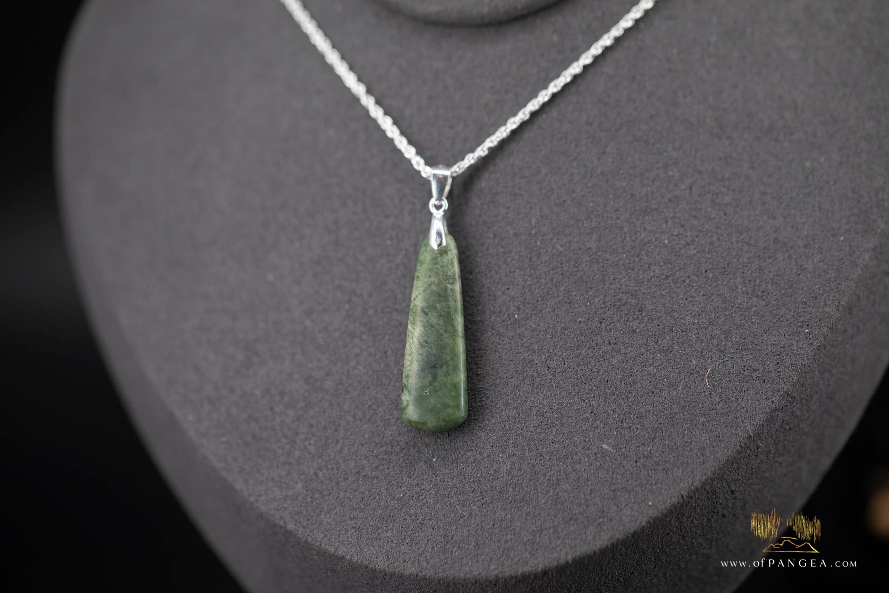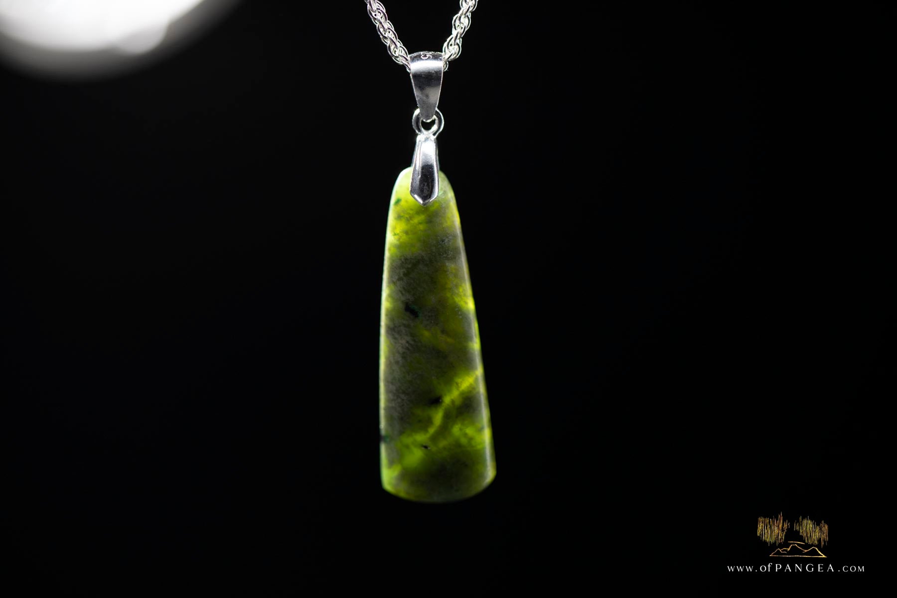 JF904 || This nice little pendant was carved from a select section of British Columbian Green Flower Nephrite Jade with a little chromium in it (bright green flecks) strung on a 0.925 - Italian sterling silver rope chain 18inch 1.35mm